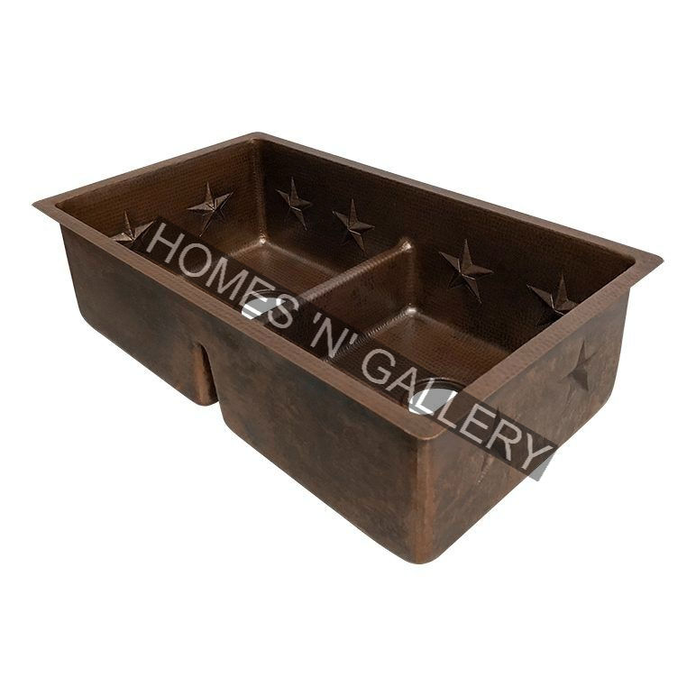 อ่างล้างจานทองแดงสองชั้นแบบงานแฮนด์เมดอ่างล้างจานทองแดงโบราณดีไซน์แบบโบราณสำหรับบ้านไร่