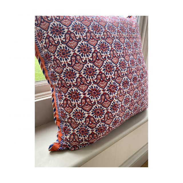 หมอนอิงเนื้อนุ่มปักลายบล็อกผ้าฝ้าย100% งานแฮนด์เมดสำหรับบ้านไร่ขนาด16x16นิ้วเหมาะสำหรับการดรอปชิปและขายปลีก