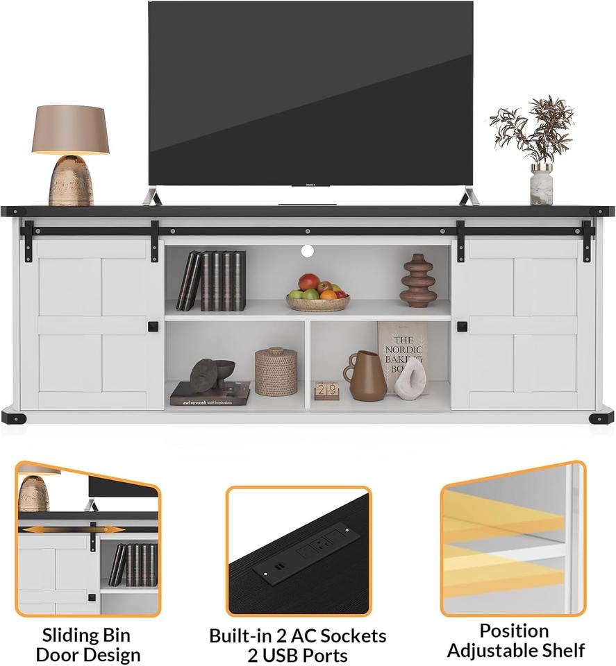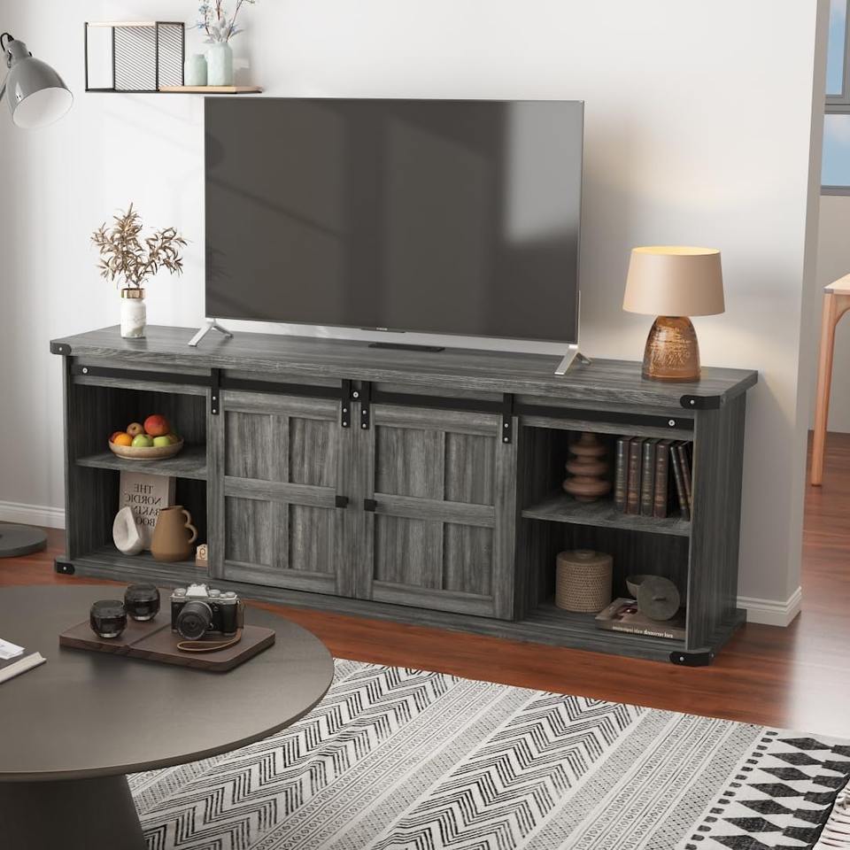 แท่นวางทีวีไม้ขนาดใหญ่สำหรับทีวี75นิ้วศูนย์ความบันเทิงทันสมัยพร้อมประตูยุ้งฉางแบบเลื่อน