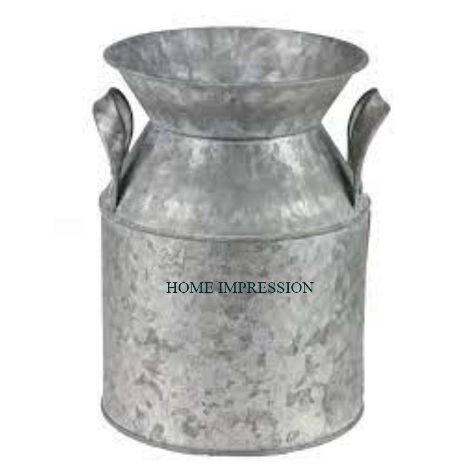 เหยือกนมโลหะชุบสังกะสีแบบชนบทสำหรับใส่ของตกแต่งบ้าน