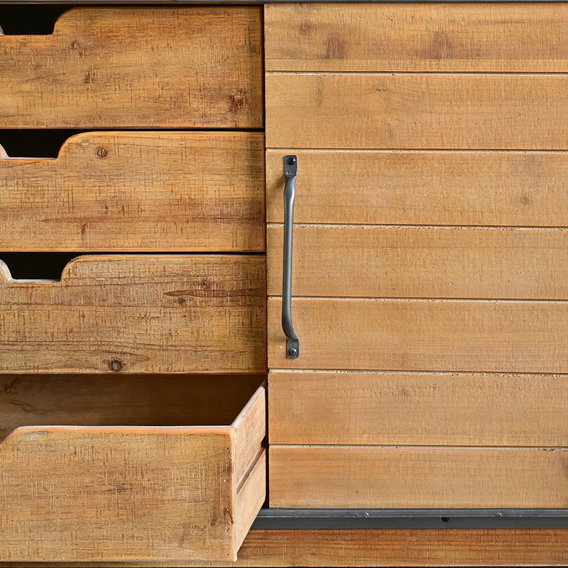 ตู้วางทีวีไม้ทำมือสไตล์บ้านไร่แบบเรียบง่าย พร้อมบานเลื่อนและพื้นที่เก็บของ ตกแต่งสไตล์โบราณ สำหรับห้องนั่งเล่น
