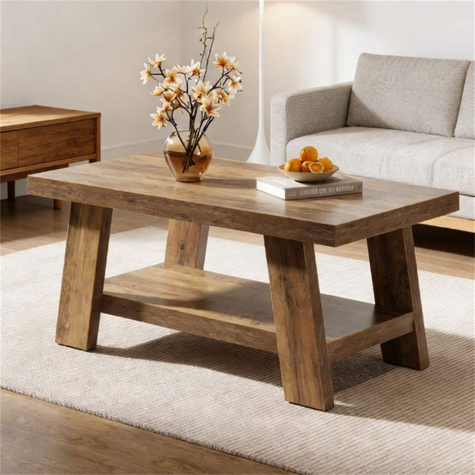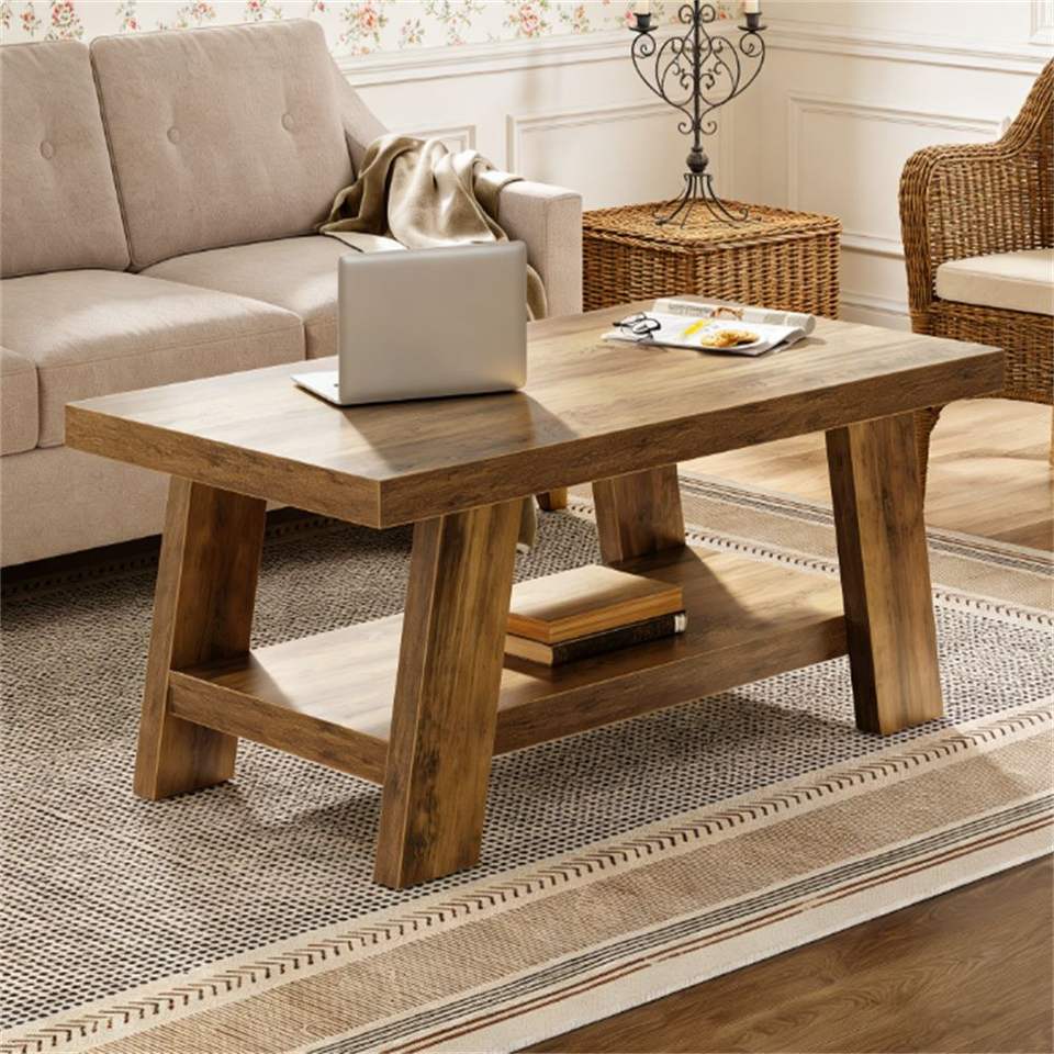 โต๊ะกาแฟสไตล์บ้านไร่สองชั้นพร้อมพื้นที่เก็บของสำหรับโซฟาและห้องนั่งเล่น