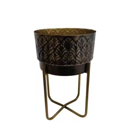 ที่ปลูกต้นไม้คริสต์มาสโลหะสีทองทุบสไตล์บ้านไร่กระถางต้นไม้เหล็กประดิษฐ์สำหรับตกแต่งต้นคริสต์มาส