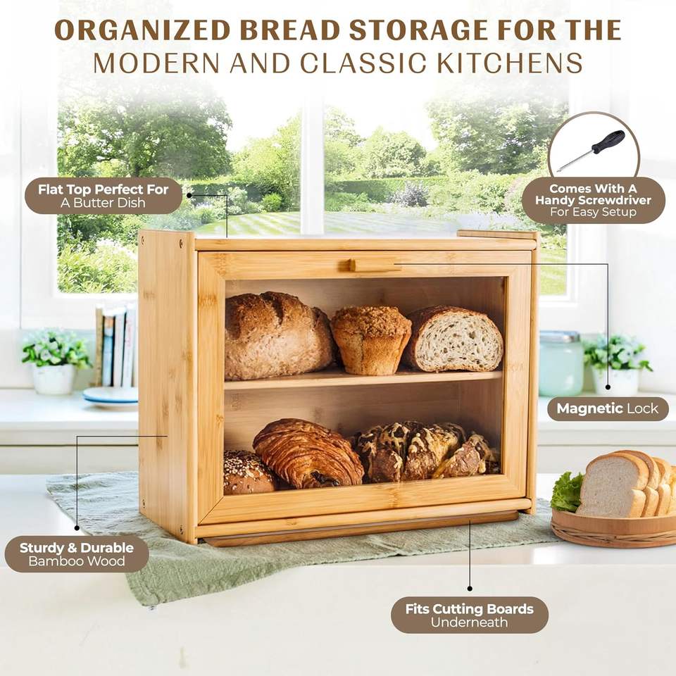 ที่เก็บขนมปังแบบเคาน์เตอร์ครัวสไตล์บ้านไร่ ความจุขนาดใหญ่ สำหรับเก็บขนมปัง ขนมปังปิ้ง เบเกิล และขนมอบต่างๆ