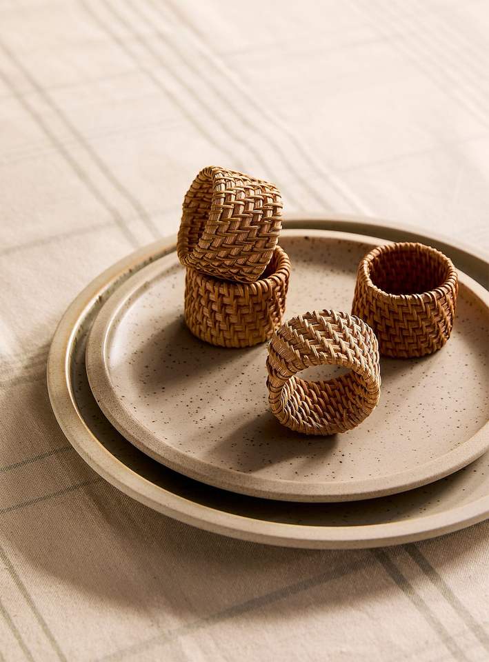 แหวนผ้าเช็ดปากทำจากหวายธรรมชาติสไตล์บ้านไร่ทำขึ้นสำหรับการตกแต่งโต๊ะในวันคริสต์มาสและตามฤดูกาล