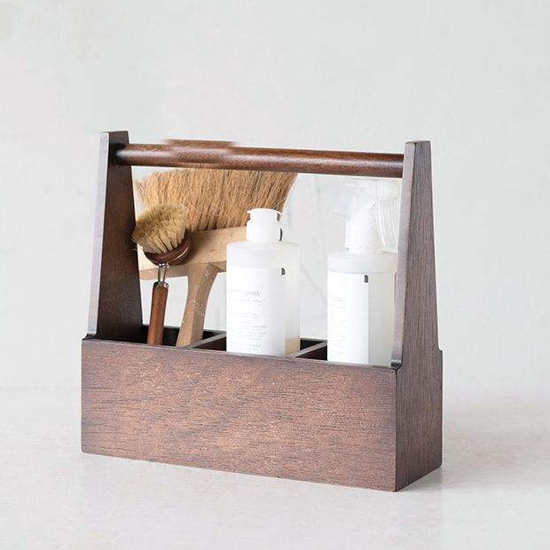 กล่องไม้สไตล์บ้านไร่ที่มีสองชั้นสำหรับพกพาเครื่องใช้บนโต๊ะอาหารผ้าเช็ดปากขวดเครื่องปรุง