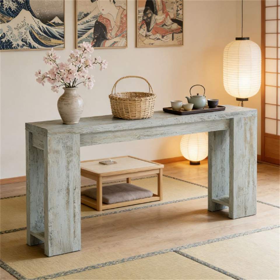 โต๊ะคอนโซลไม้ตกแต่งสไตล์บ้านไร่สำหรับใช้ในโถงทางเข้าหรือข้างโซฟา