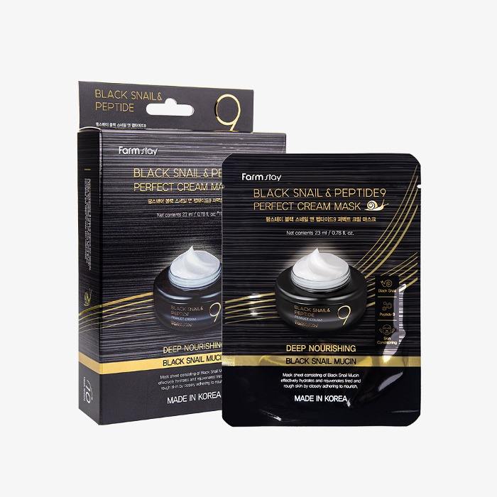 ฟาร์มสเตย์ เฟซ ครีม มาส์ก แพ็ค 10 แผ่น เพอร์เฟค สเนล แอนด์ เปปไทด์ 9 สีดำ