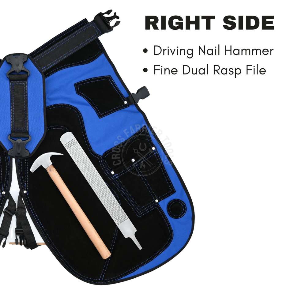 ฟังก์ชัน:ชุดผ้ากันเปื้อนช่างเกือกม้าหนังอเนกประสงค์ พร้อมอุปกรณ์ดึงกีบและเครื่องมือย้ำเกือกม้า