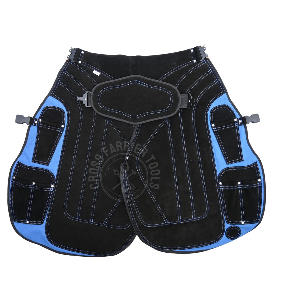 ผ้ากันเปื้อนช่างเกือกม้า รุ่น Long Chap พร้อมสายปรับได้ หัวเข็มขัดเหล็ก วัสดุตาข่ายระบายอากาศ ช่องใส่มีด และแม่เหล็กเก็บตะปู