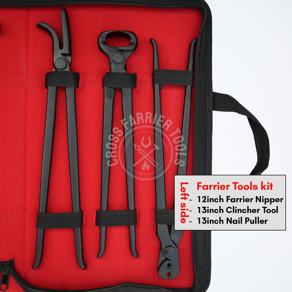 ชื่อผลิตภัณฑ์:ชุดเครื่องมือ farrier เคลือบสีดำ Clincher และ PULLER, hoof Knife