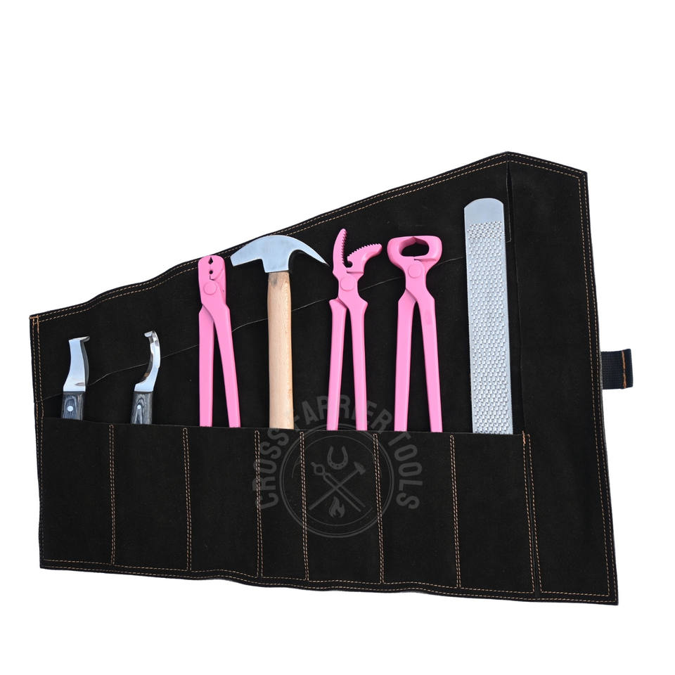 ชุดเครื่องมือช่างเกือกม้า พร้อมคีมตัดกีบเคลือบสีชมพู คีมย้ำกีบ และที่ถอนตะปู