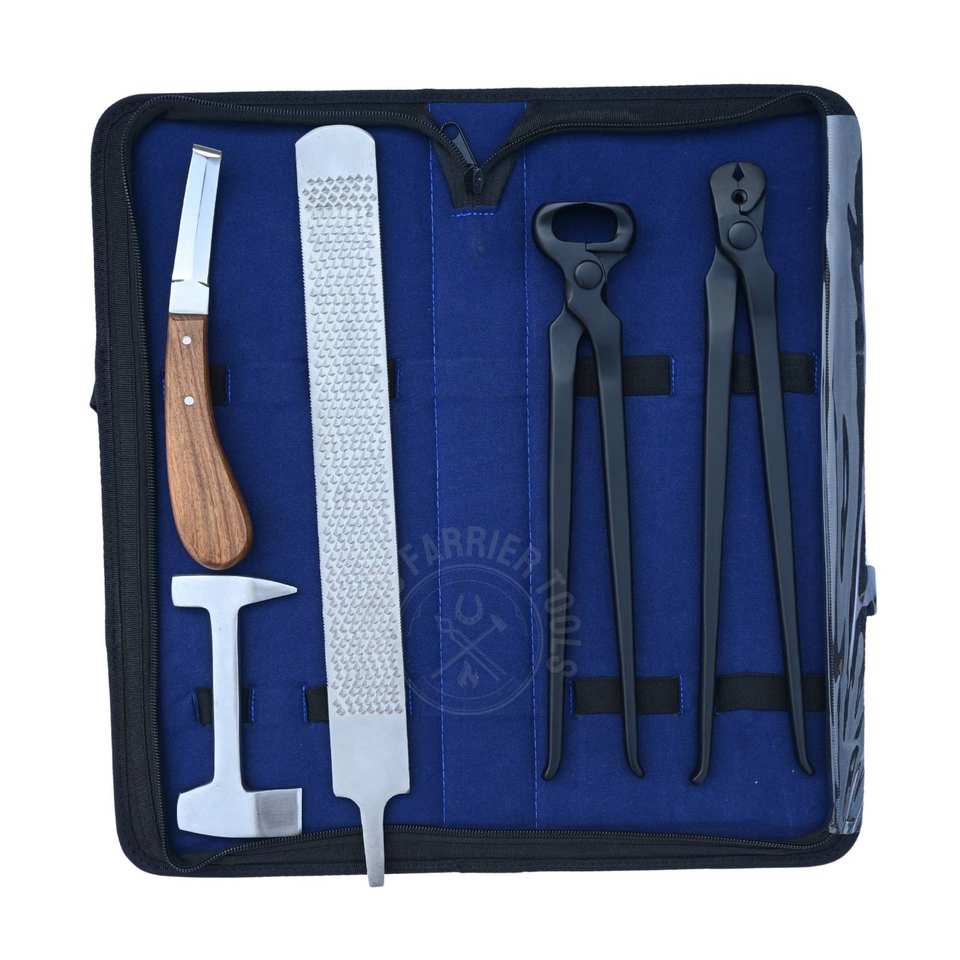 ชุดเครื่องมือช่างตัดแต่งกีบสัตว์ สแตนเลสสีดำ คีมตัดกีบ คีมถอนตะปู ใบมีดคมสองด้าน มีดเหล็ก ตะไบขัดกีบ และตะไบแต่งกีบ