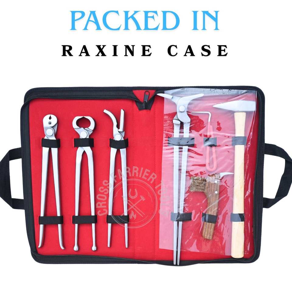 ชุดเครื่องมือช่างเกือกม้าในกล่องพร้อมเครื่องมือถอดตะปู คีมตอกตะปู ค้อนตอกตะปู ที่ถ่างรองเท้า ที่ดึงตะปู ที่ถอนตะปูรองเท้าเก่า