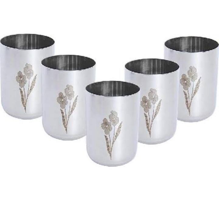 แก้วสแตนเลสลายสลักสวยงาม พร้อมเคลือบเงิน ชุด 6 ใบ สำหรับอุปกรณ์เครื่องดื่มและเสิร์ฟเครื่องดื่ม