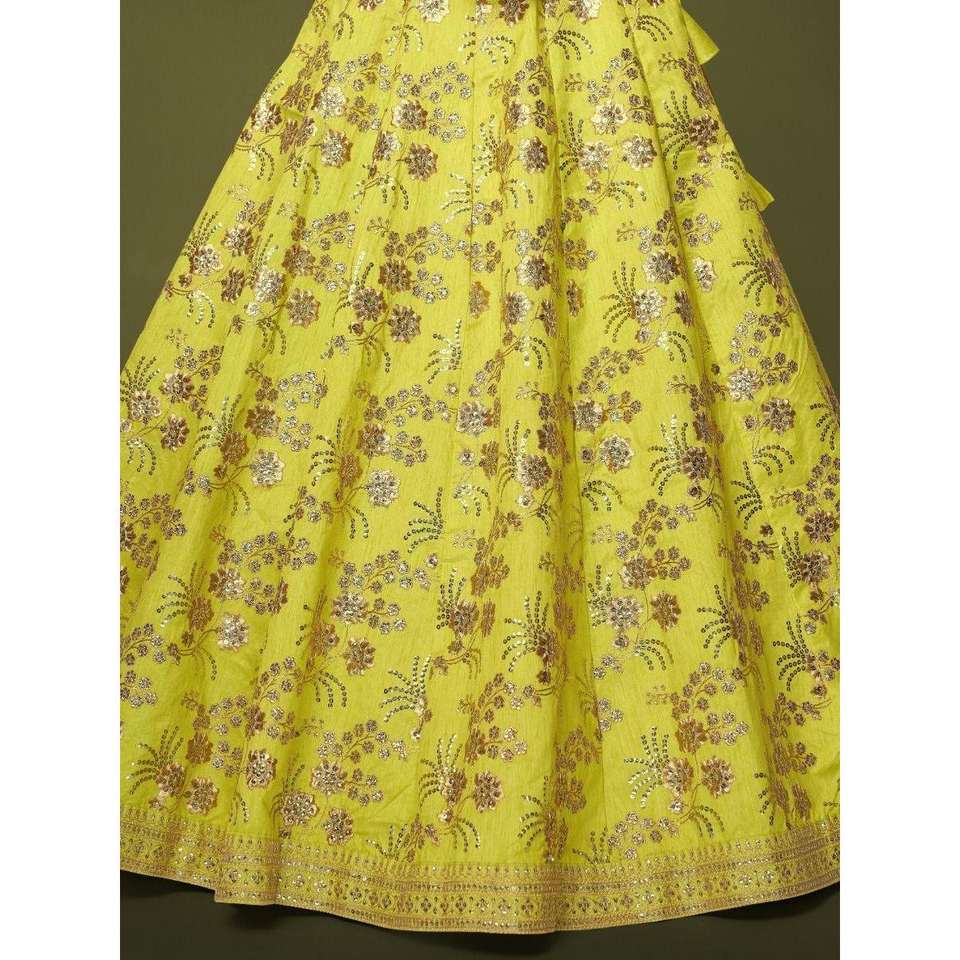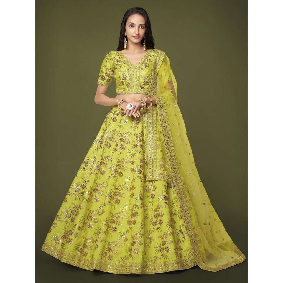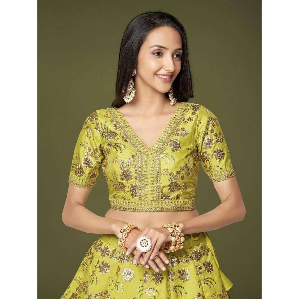 Lehenga choli ชุดผ้าไหมปักเลื่อมสีเขียวนีออนที่น่าสนใจ