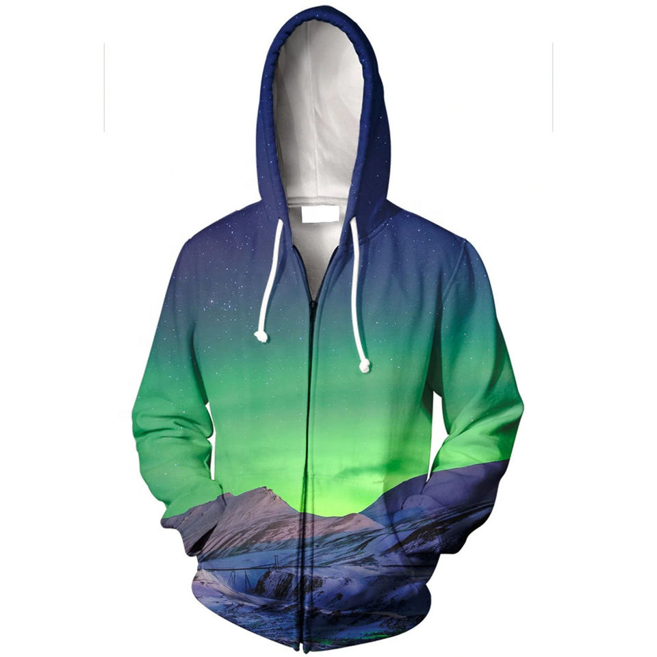 เสื้อฮู้ดแขนยาวผ้าโพลีเอสเตอร์พิมพ์ซับลิเมชันแห้งเร็วกำหนดได้เองแฟชั่น100%