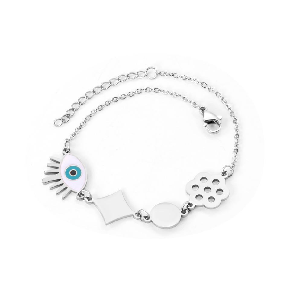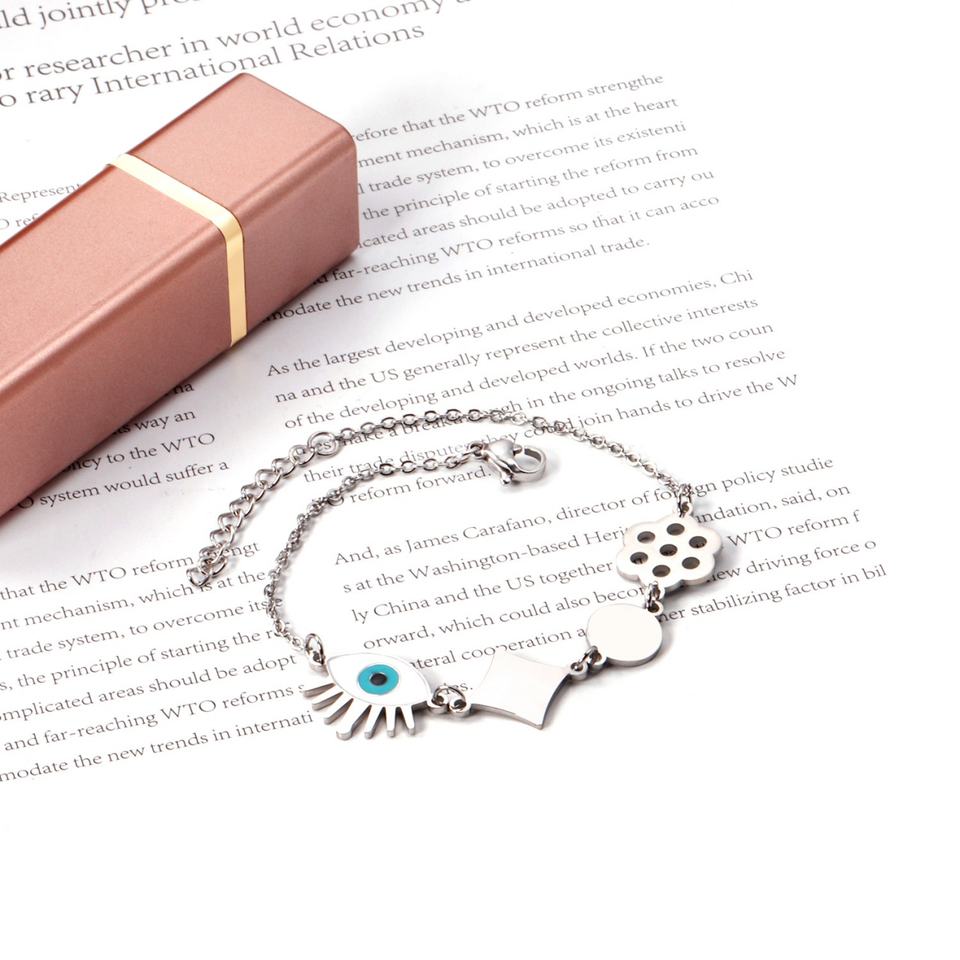 กำไลข้อมือแฟชั่นสแตนเลสสตีลชุบทอง 18k ลายตาปีศาจ ขายส่ง