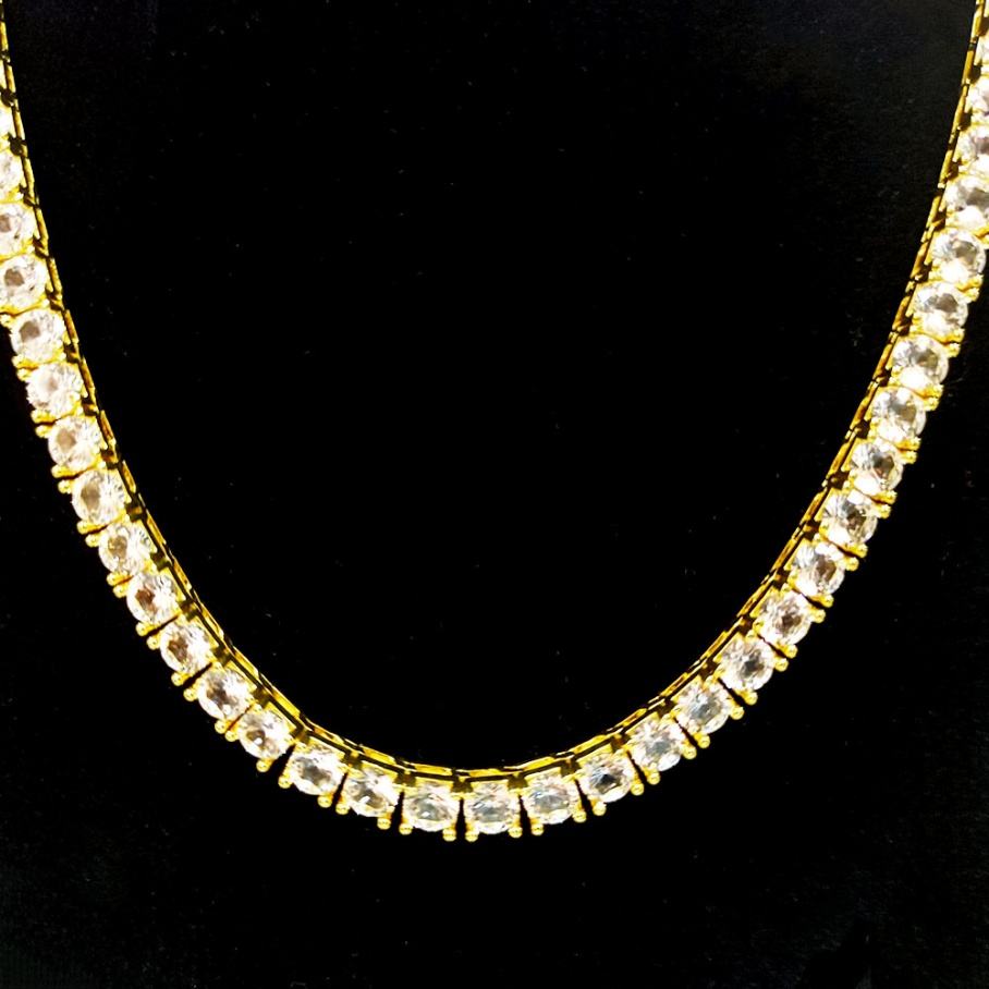 สร้อยคอเทนนิสผู้ชาย ชุบทอง 18K ประดับด้วยคอรันดัมสีขาวทรงกลมขนาด 5 มม. ชุบทองแดง