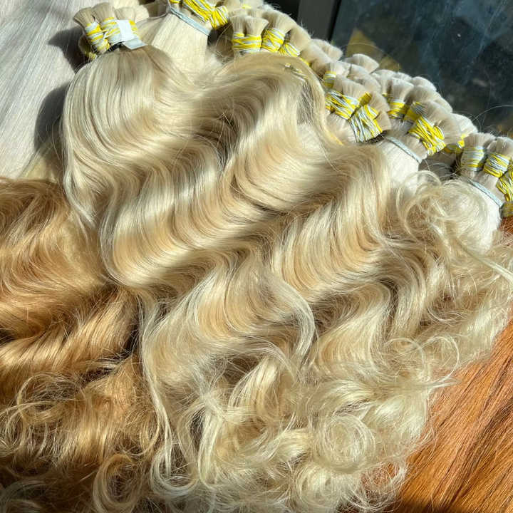 แฟชั่น # ผมต่อเวียดนามแท้ 60 สี ราคาส่ง จำนวนมาก สีบลอนด์อ่อน ลอนสวย ซุปเปอร์ดับเบิ้ลดรอน 55 ซม.