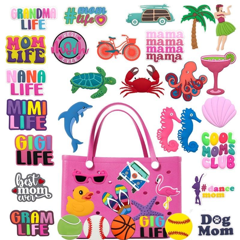จี้ห้อยกระเป๋า Bogg ขนาดใหญ่ 7 ซม. สำหรับตกแต่งกระเป๋า Eva Beach Basket Tote Bag พร้อมกระดุม PVC ตกแต่งลายลูกบอล