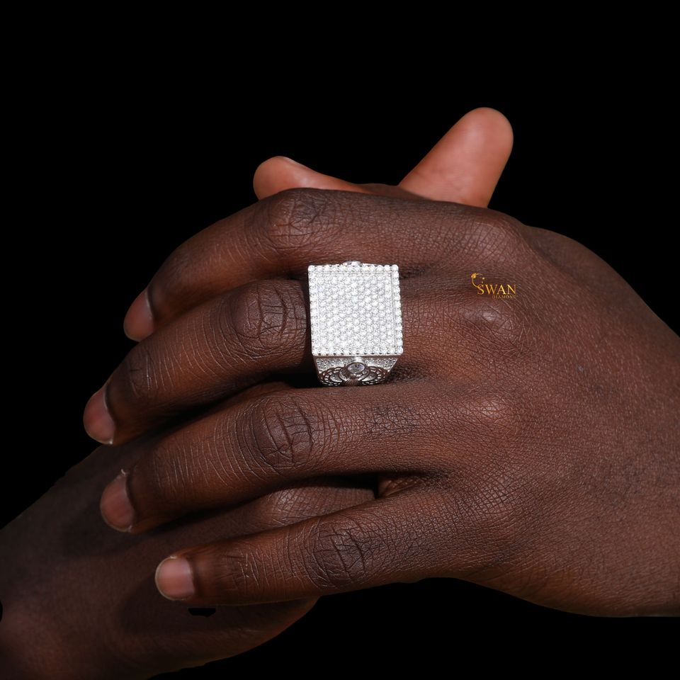 แหวนเพชร925แฟชั่นเงินสเตอร์ลิงสำหรับผู้ชายเครื่องประดับสไตล์ฮิปฮอปสีเงินแท้สำหรับปลูก