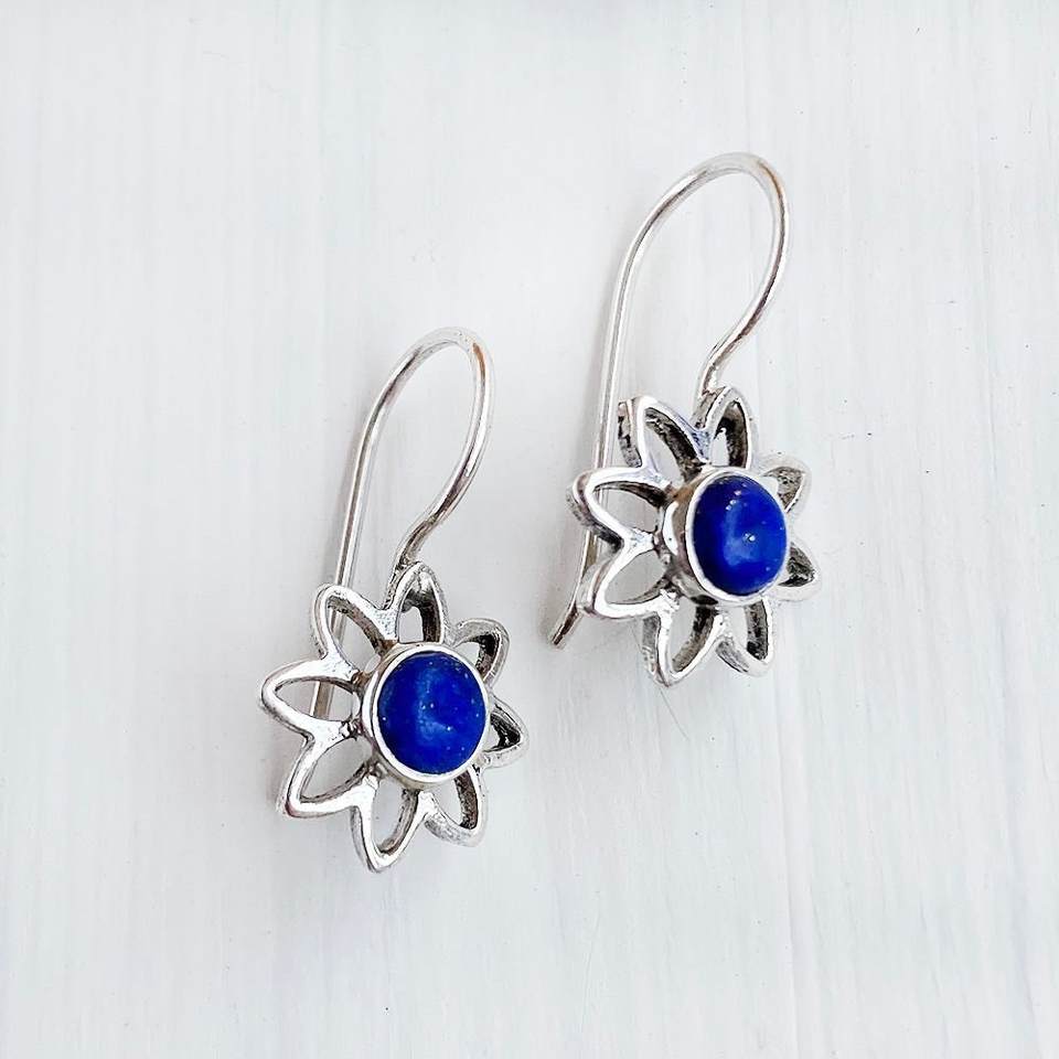 ต่างหูเงินประดับลาพิส