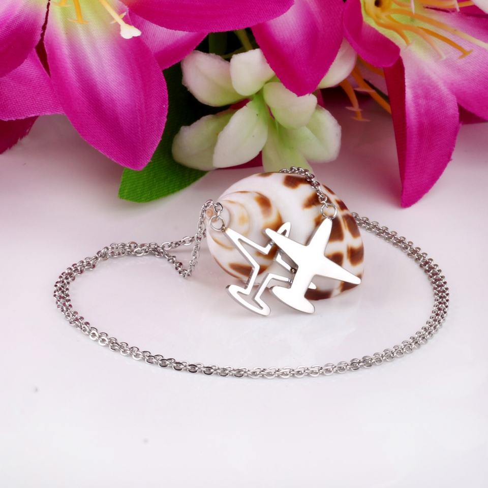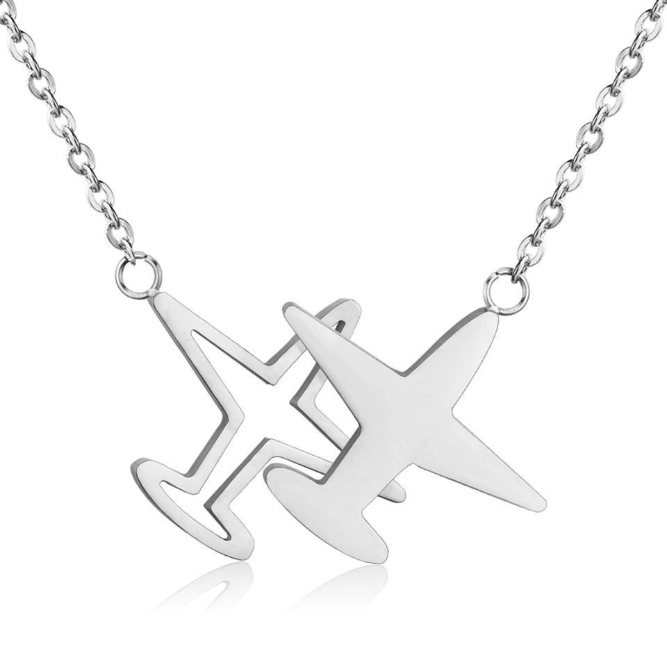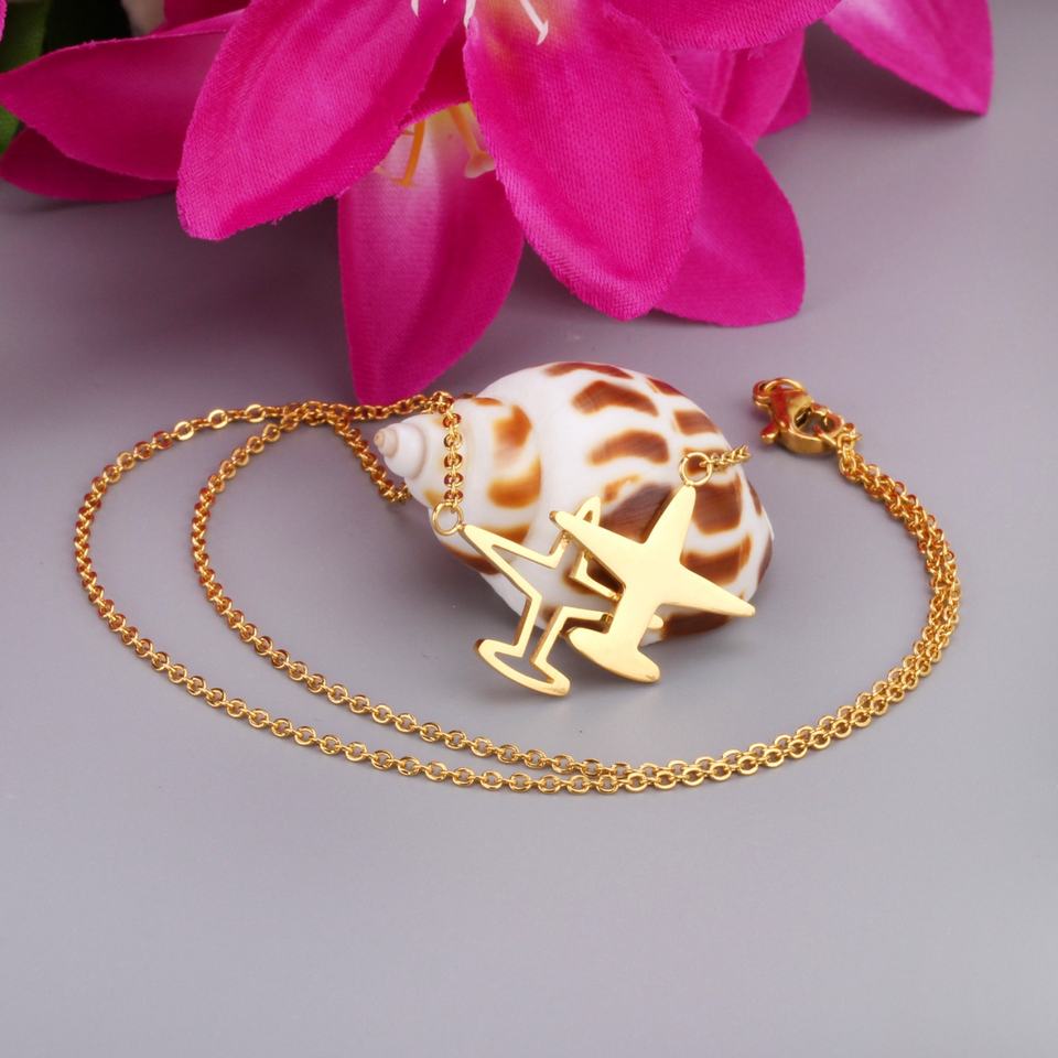 สร้อยคอจี้รูปเครื่องบินแฟชั่น สแตนเลสสตีล สีทองเงา พร้อมสายโซ่แบบเชื่อมต่อ เครื่องประดับสำหรับทุกเพศ ขายส่ง ของขวัญ