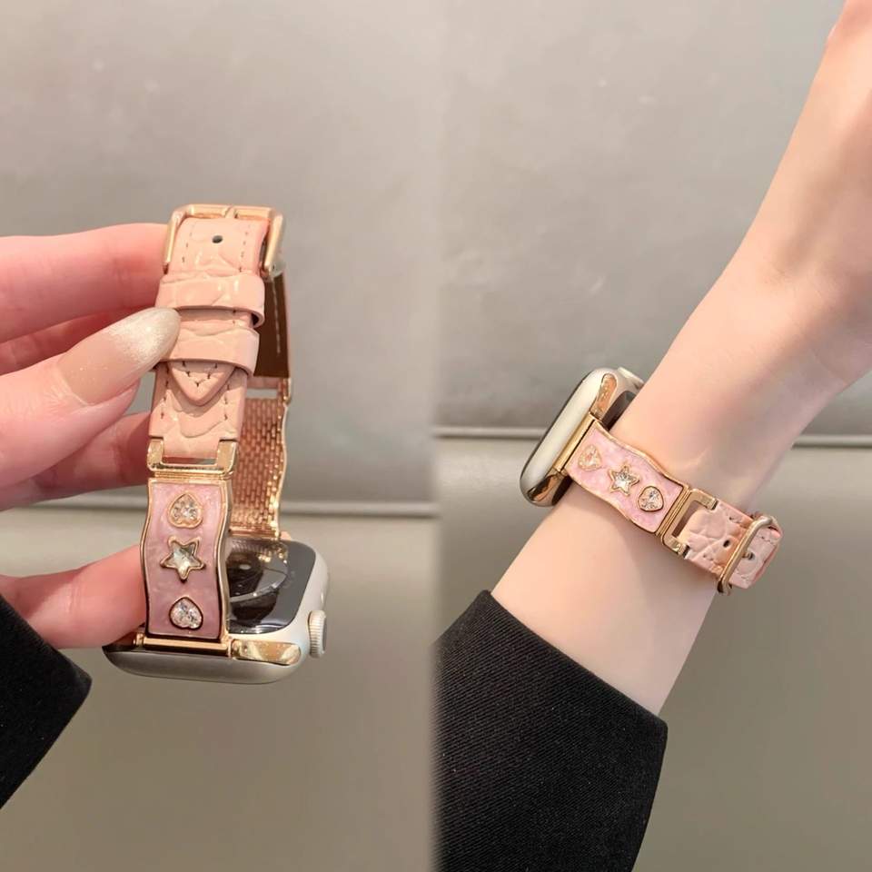 สายนาฬิกาข้อมือดีไซน์สวยหรูประดับดาวและคริสตัล วัสดุโลหะผสมและหนัง สำหรับ Apple Watch 11 10 Ultra สายรัดข้อมือเปลี่ยนได้