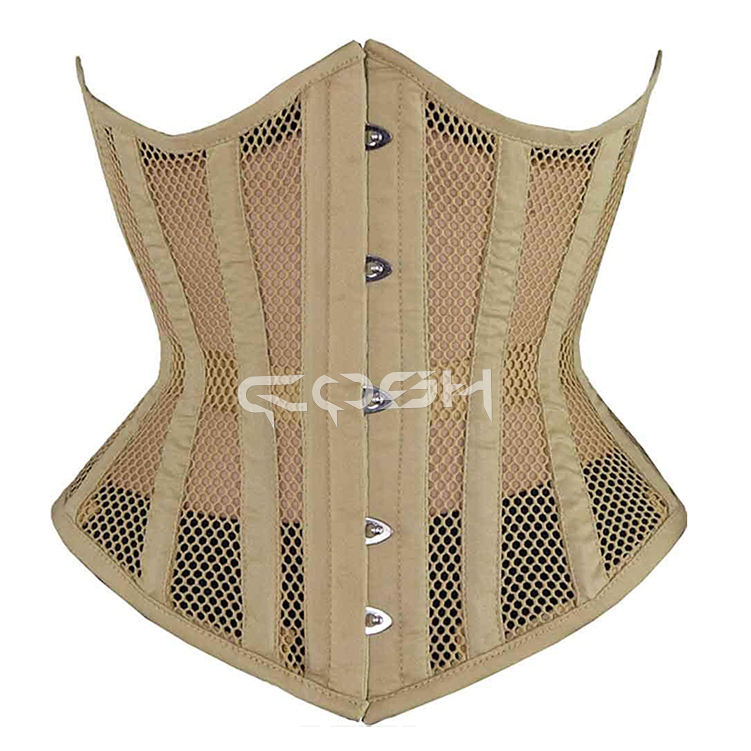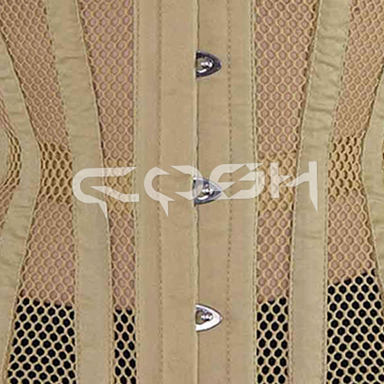 ชุดรัดเอวคอร์เซ็ตรัดเอวผ้าลูกไม้ตาข่ายสีเบจแฟชั่นและฟิตเนส
