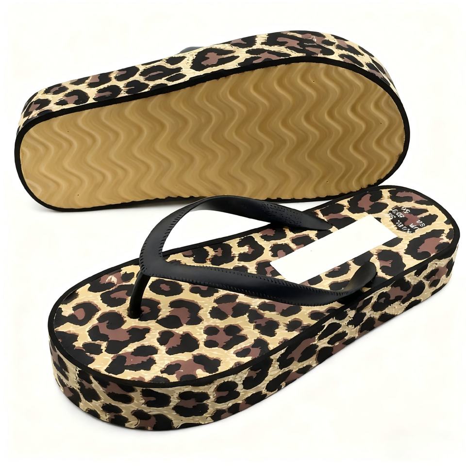 รองเท้าแตะส้นตึกลายสัตว์แฟชั่น รองเท้าส้นสูงแบบหนาสำหรับผู้หญิง ฤดูร้อน รองเท้าแตะพื้นหนา รับผลิตแบบ OEM ODM