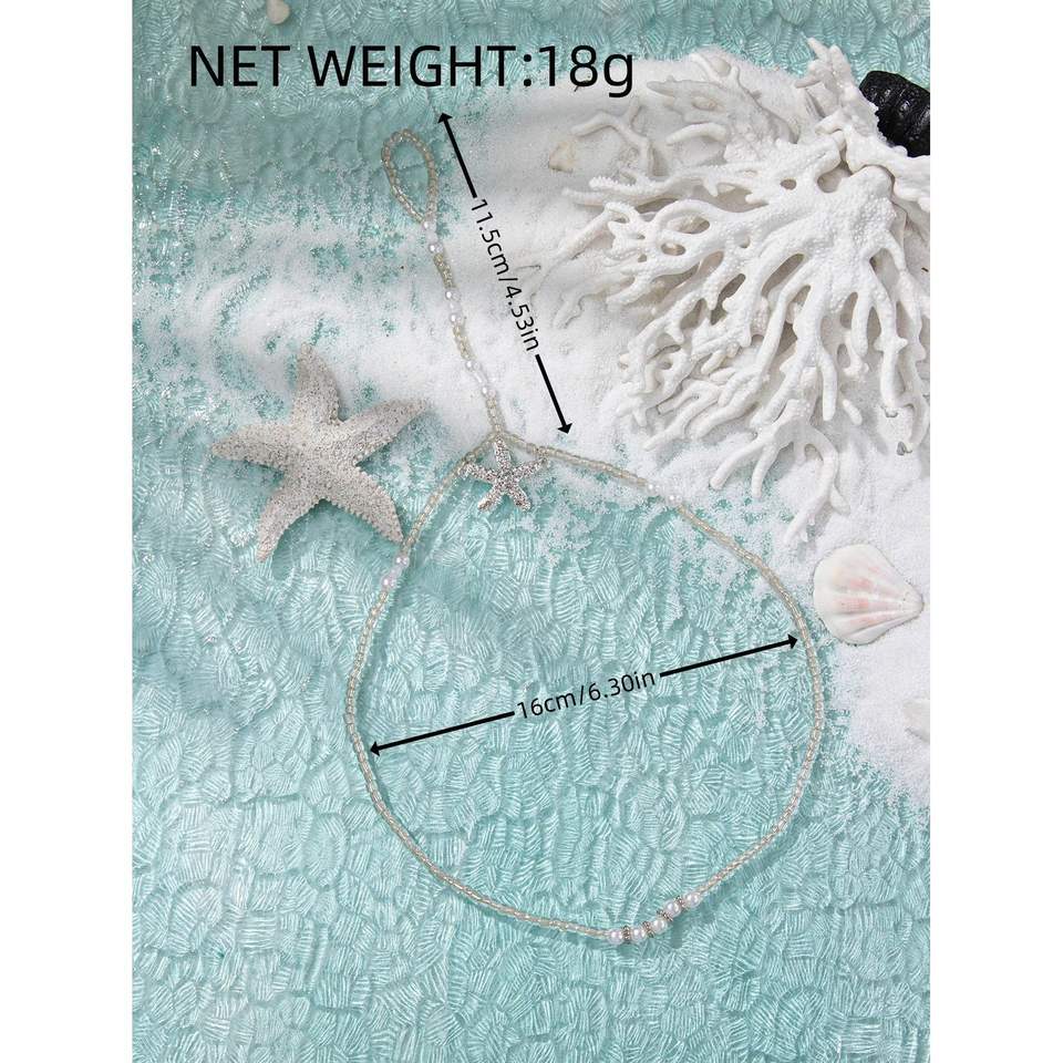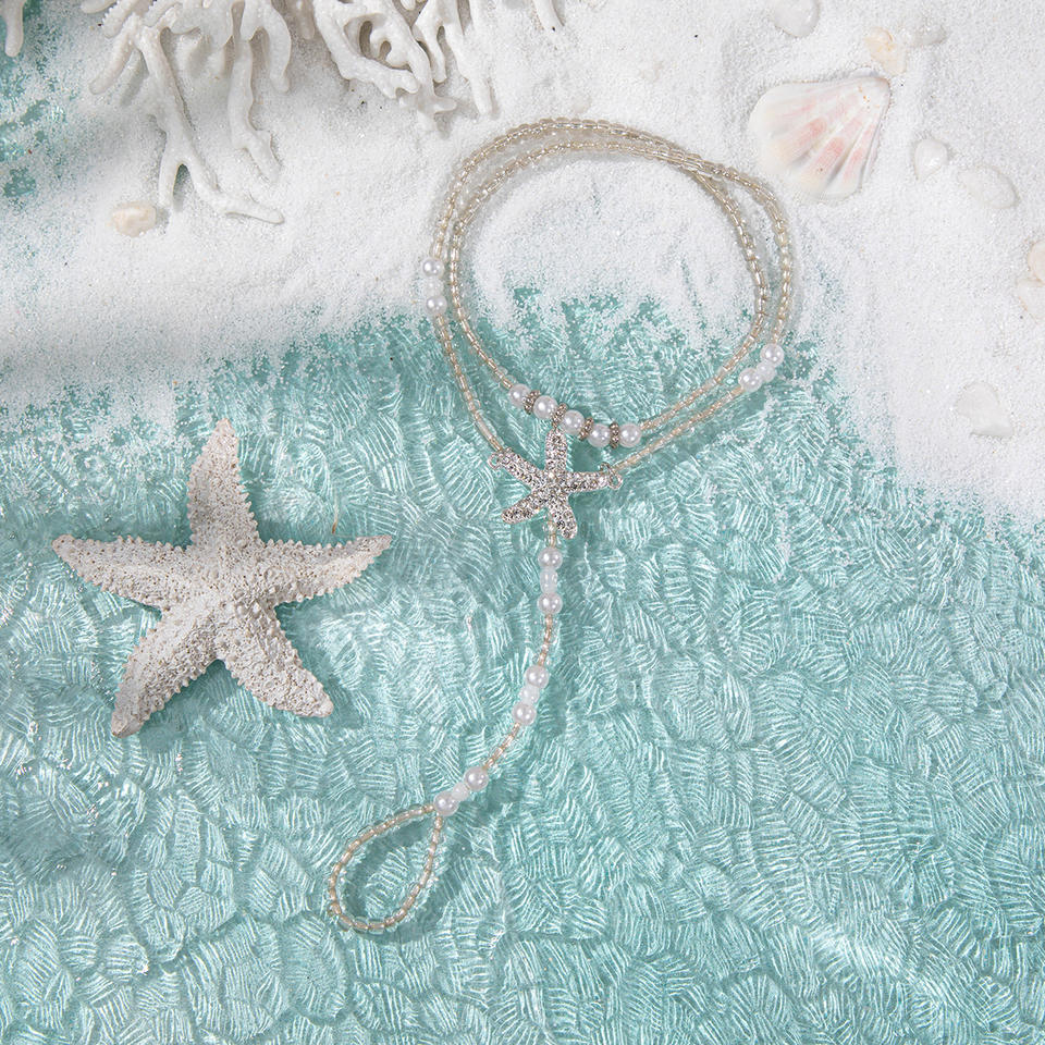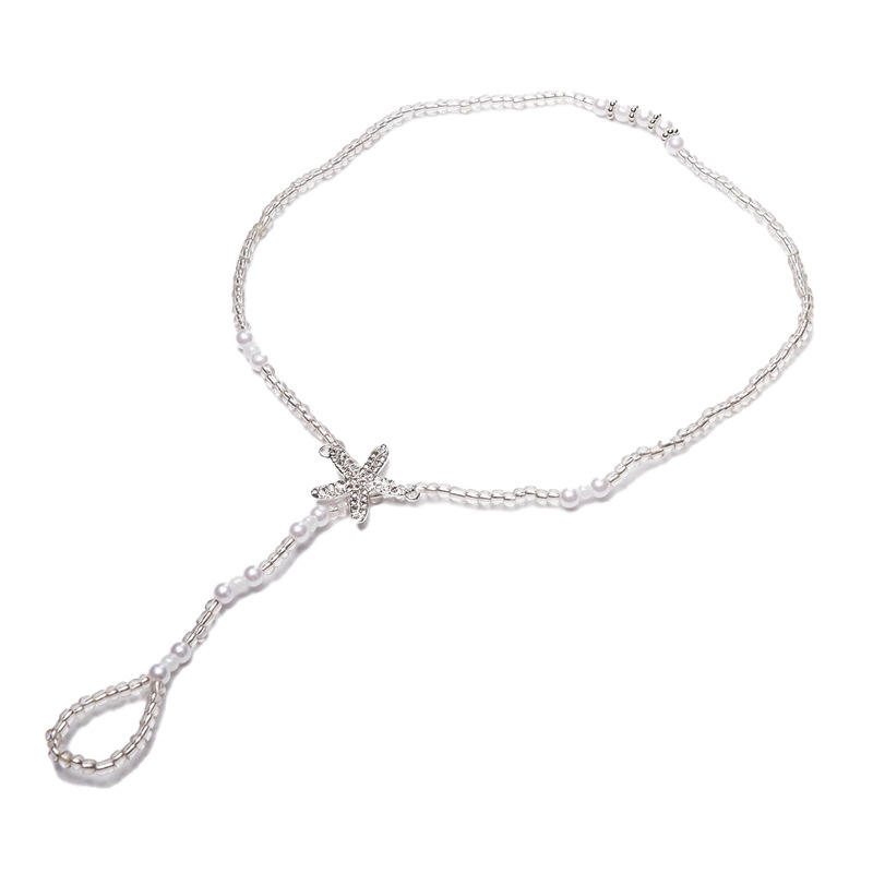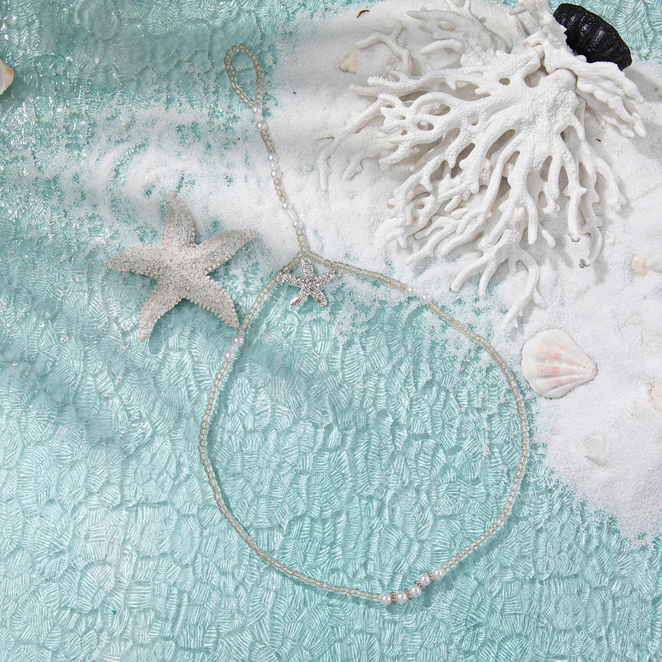 แฟชั่นสร้อยข้อเท้าเลียนแบบไข่มุกคริสตัลรูปดาวสไตล์โบฮีเมียผู้หญิงปาร์ตี้เครื่องประดับชายหาดชุบเงิน