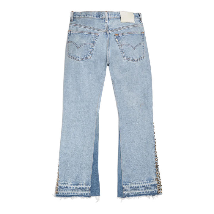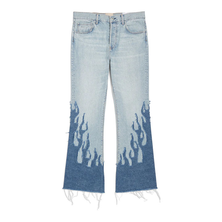 กางเกงยีนส์แฟชั่นทรงแบ็กกี้ขาบานสไตล์สตรีทแวร์ วินเทจ ล้างสีแบบแอซิดวอช กางเกงเดนิมขาบานสำหรับผู้ชาย