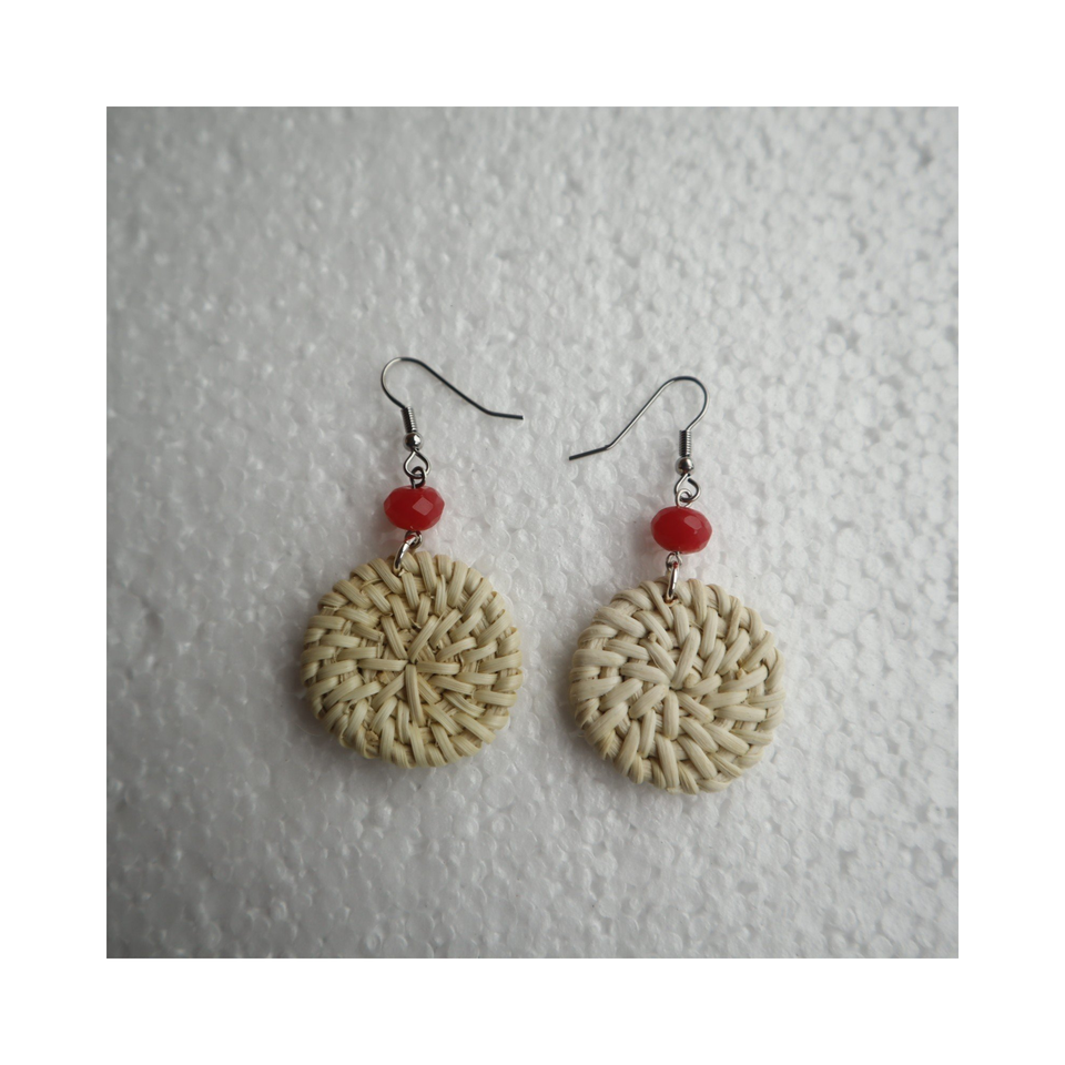 ต่างหูหวายไม้ไผ่สานด้วยมือแฟชั่นต่างหูฟางไม้ทอแบบโบฮีเมียนพู่ห้อยต่างหูสำหรับเด็กผู้หญิง/ผู้หญิง