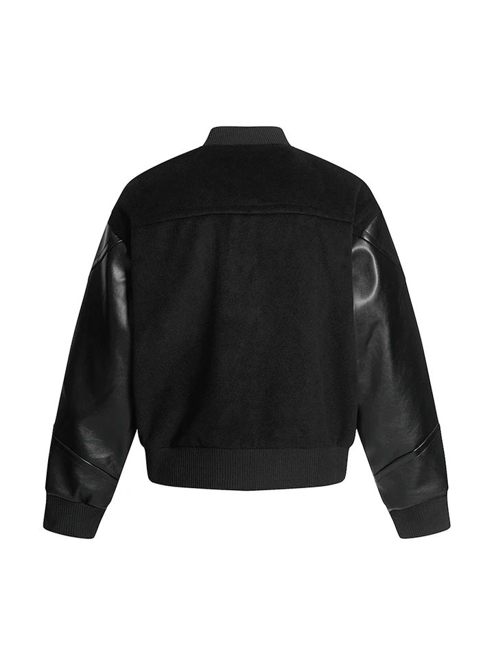 Fashion Black PU Leather Patchwork Long Sleeves Jacket Women's Round Neck Loose Fit Single Breasted Jackets Jacket for man