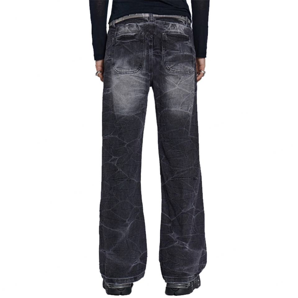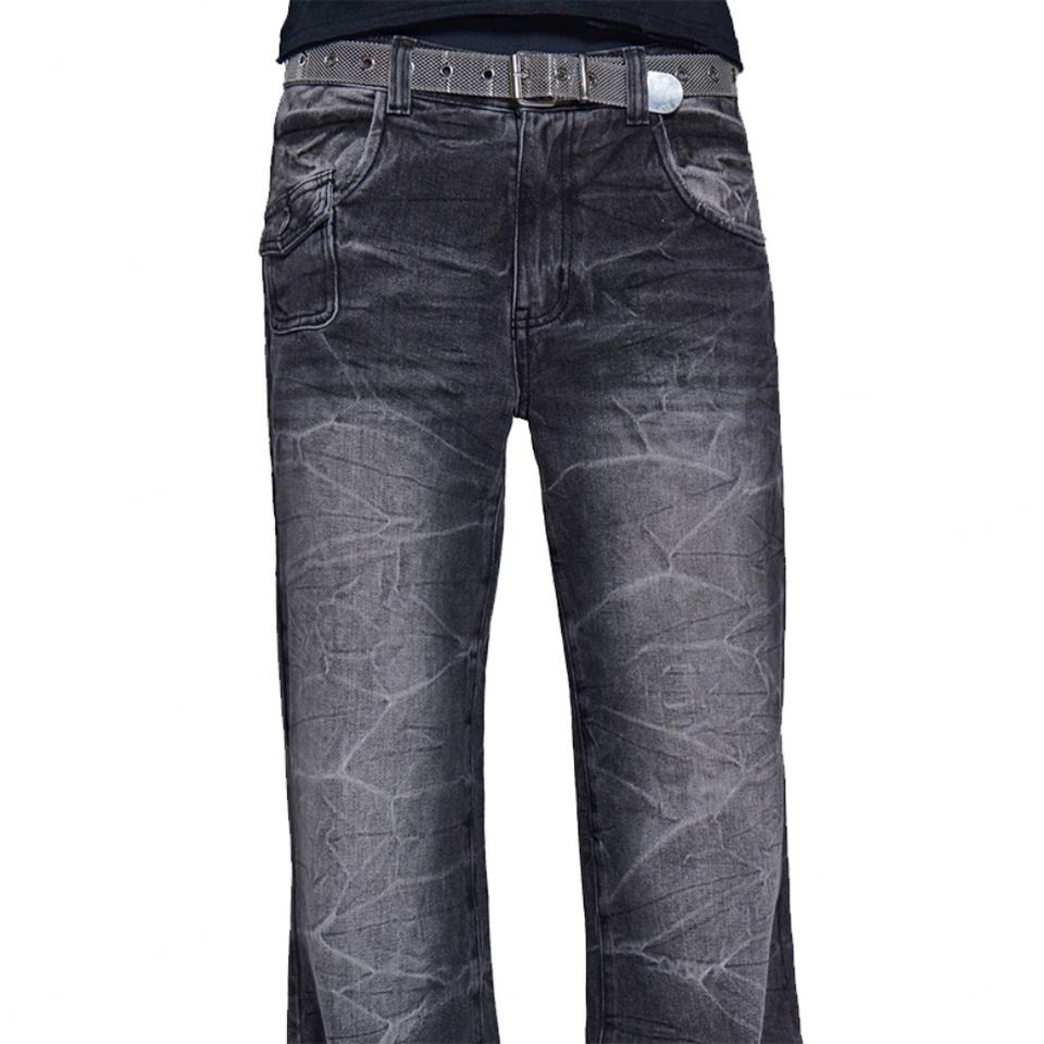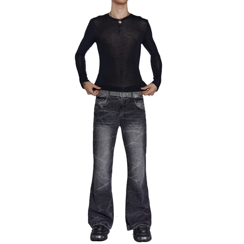 กางเกงยีนส์แฟชั่นสีดำบางเฉียบสำหรับผู้ชาย