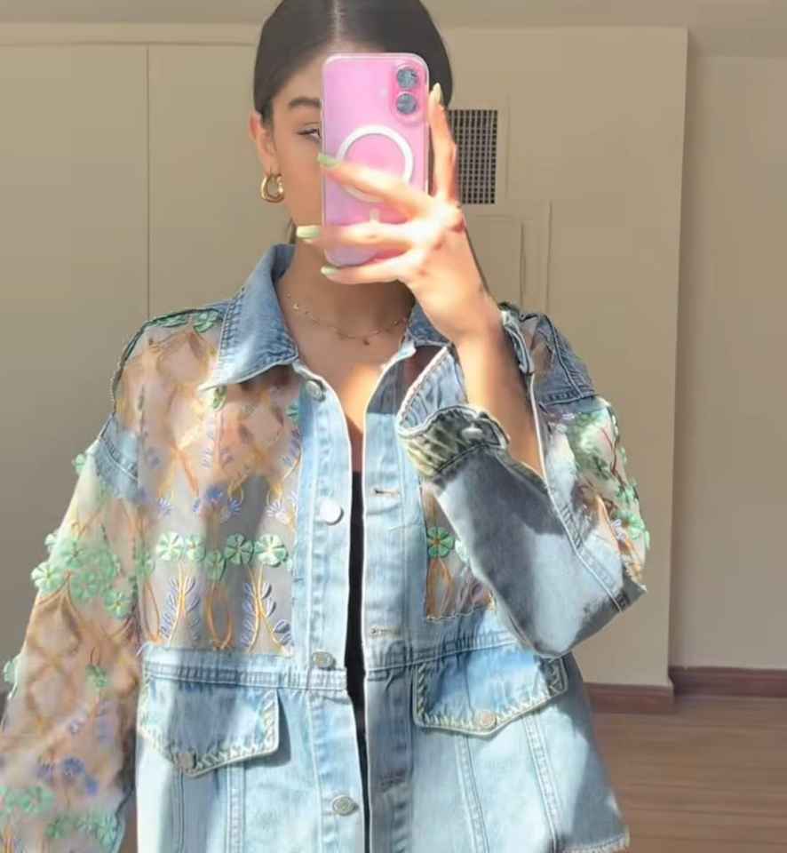 เสื้อแจ็คเก็ตยีนส์ผู้หญิง แขนยาว ผ้าเรียบ สีพื้น ระบายอากาศได้ดี เป็นมิตรกับสิ่งแวดล้อม แฟชั่นฤดูหนาว ทันสมัย