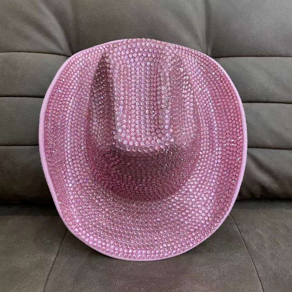 หมวกโบว์เลอร์ประดับพลอยเป็นประกายแฟชั่นหมวกปีกกว้างอะคริลิคคาวบอยปาร์ตี้สำหรับทั้งสี่ฤดูกาลใช้ได้ทั้งชายและหญิง