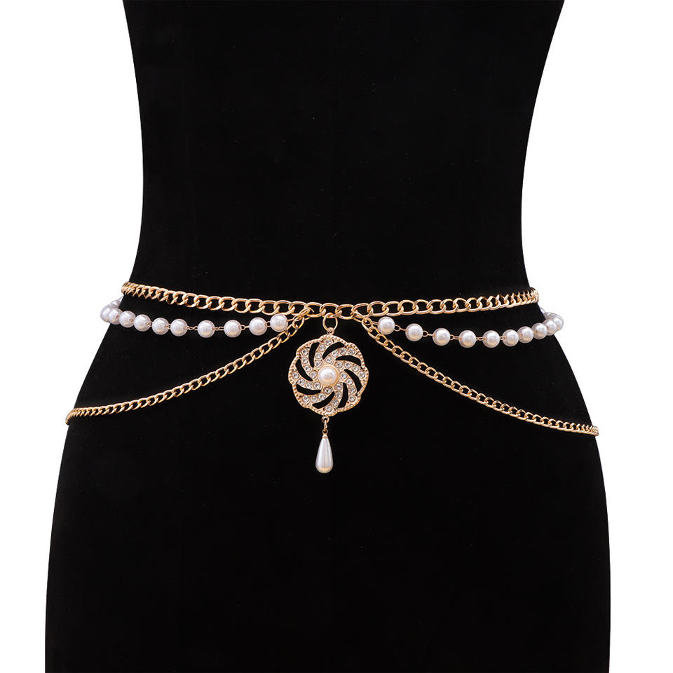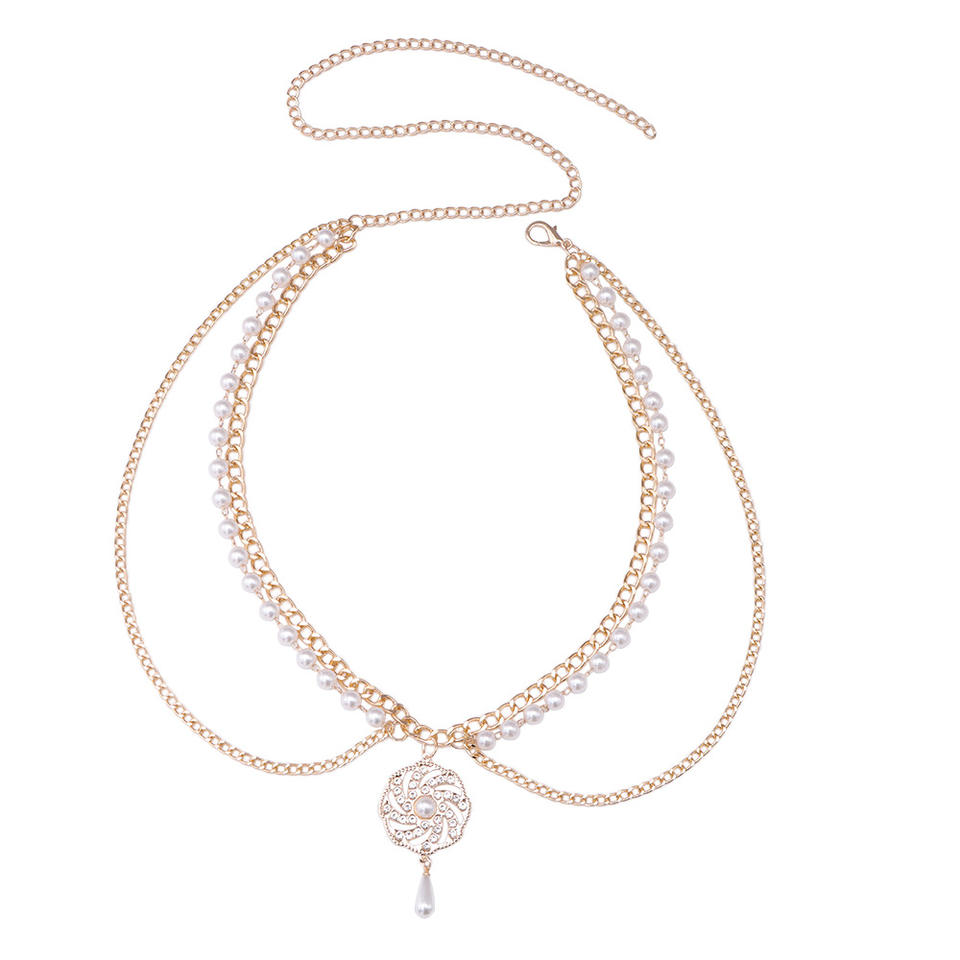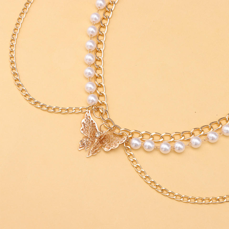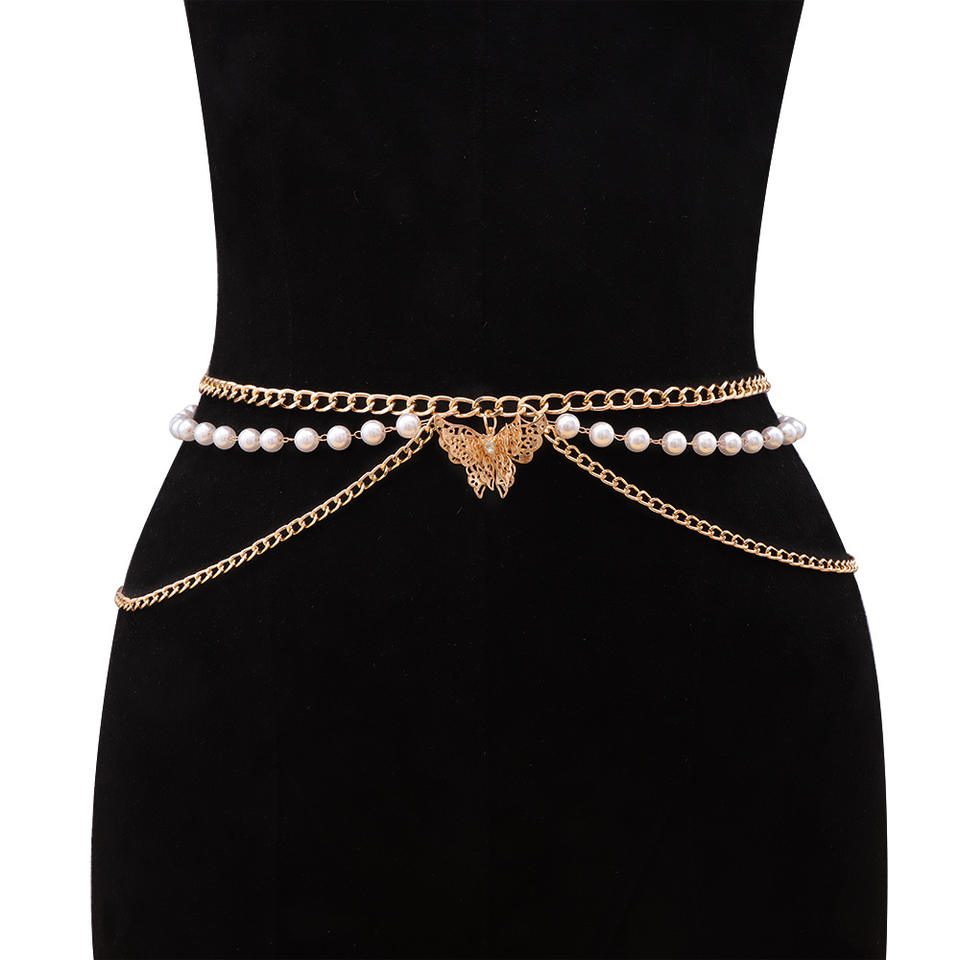 เครื่องประดับร่างกายแฟชั่น โซ่ทองประดับผีเสื้อและมุก หลายชั้น สำหรับงานปาร์ตี้