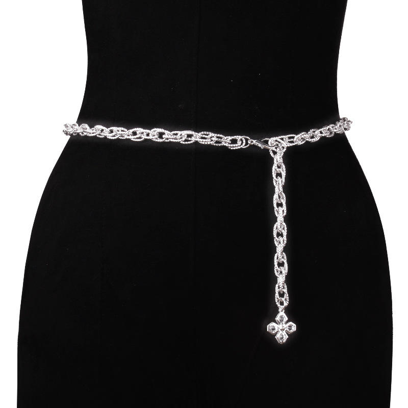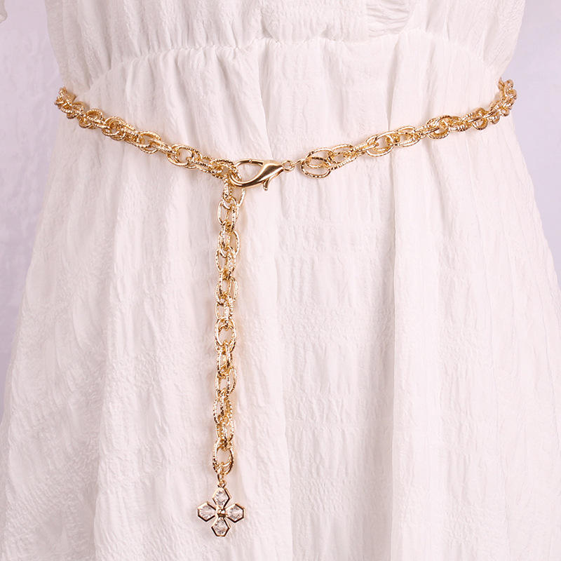 สร้อยคอแฟชั่นรูปกางเขนสีทอง โลหะผสมสังกะสี สไตล์ฮิปฮอป สำหรับใส่ทุกวัน แบบสายคาดเดี่ยว ประดับเพชรเม็ดเดี่ยวสีขาว K