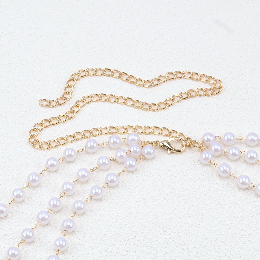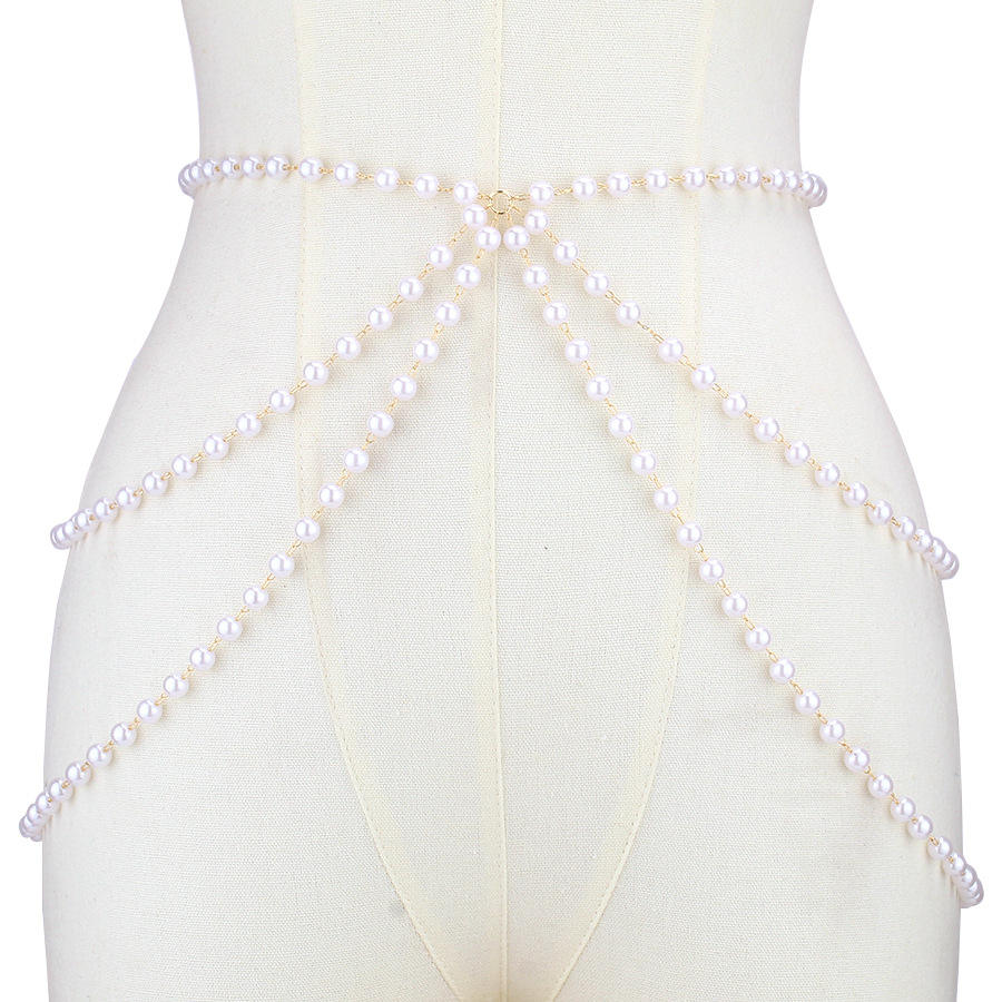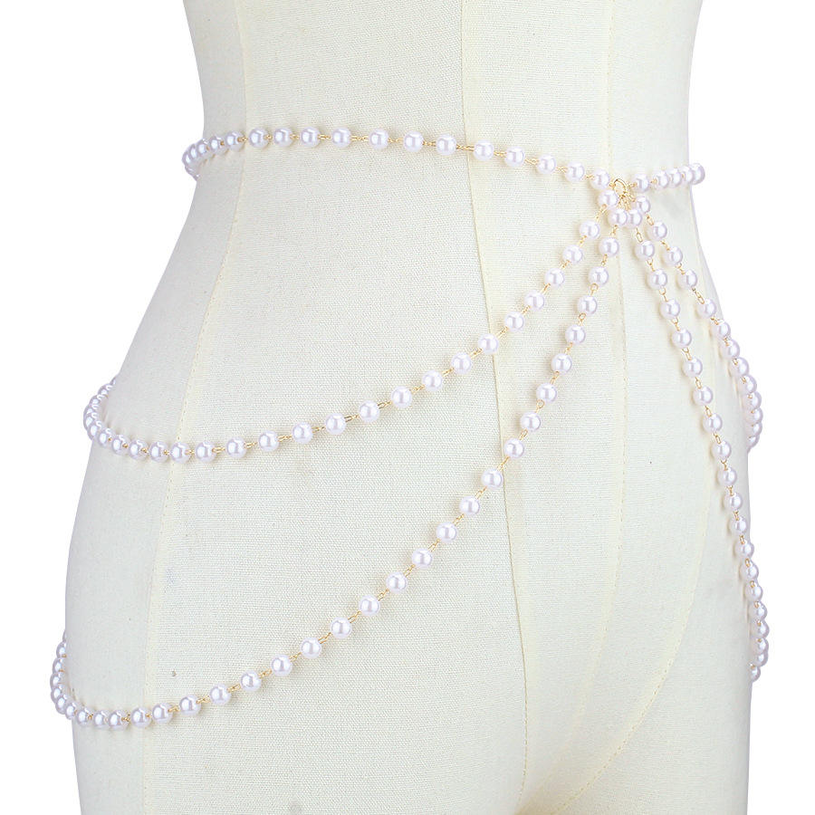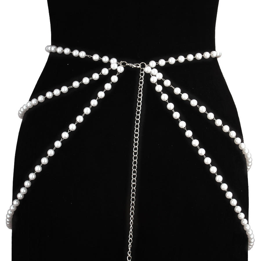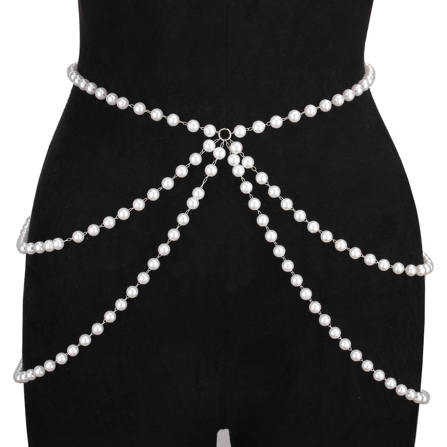 โซ่คล้องตัวแฟชั่น ประดับมุกเทียม หลายชั้น โซ่คาดเอวสำหรับผู้หญิง สไตล์ฮิปฮอป ดีไซน์พู่ห้อย