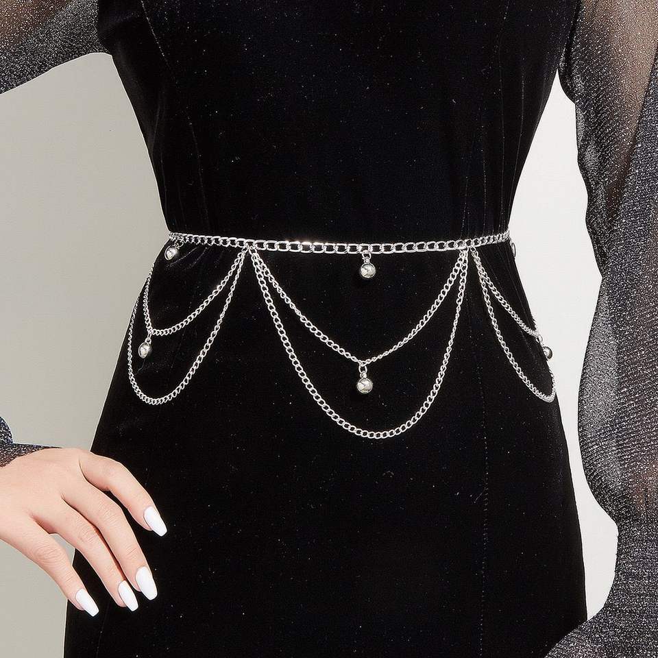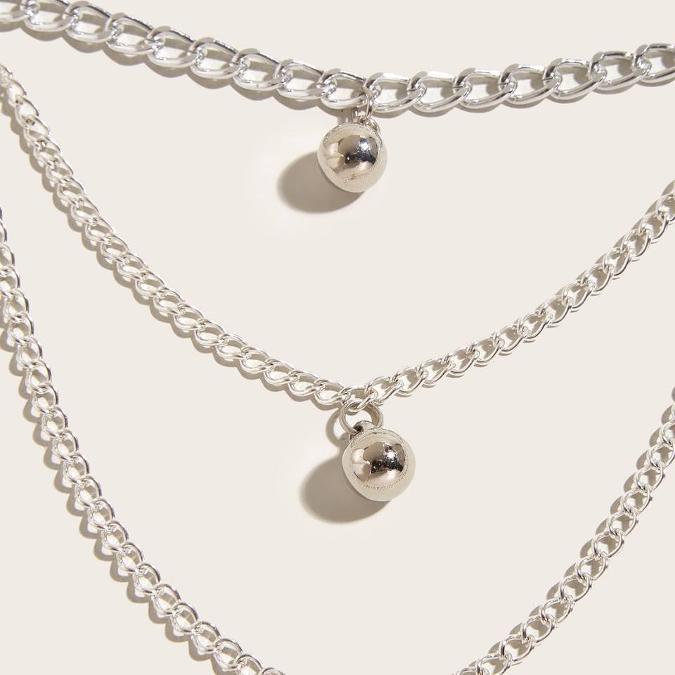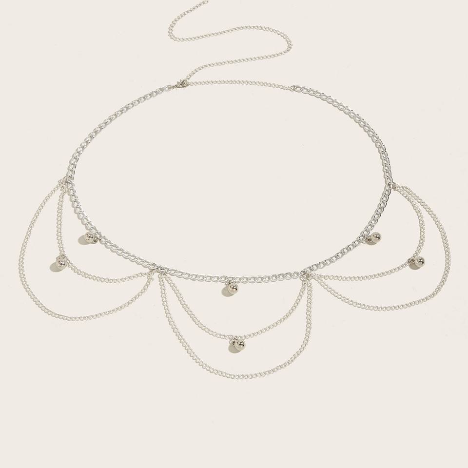 โซ่คล้องเอวแฟชั่นหลายชั้น ประดับจี้ลูกบอล สำหรับงานปาร์ตี้ ทำจากโลหะผสมสังกะสี สีเงิน