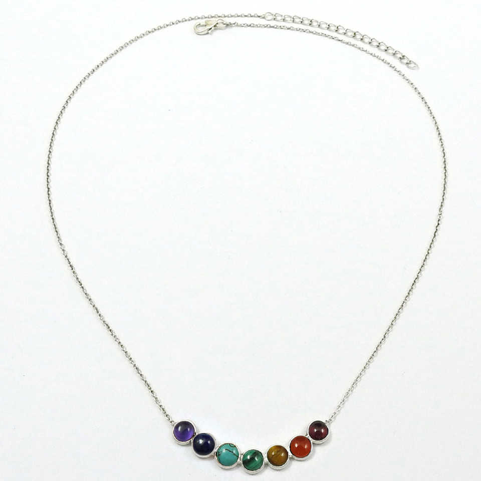 เครื่องประดับแฟชั่นโบฮีเมียนทำจาก925เงินสเตอร์ลิง7จักระโชคดีสร้อยคออัญมณีหลายแบบ