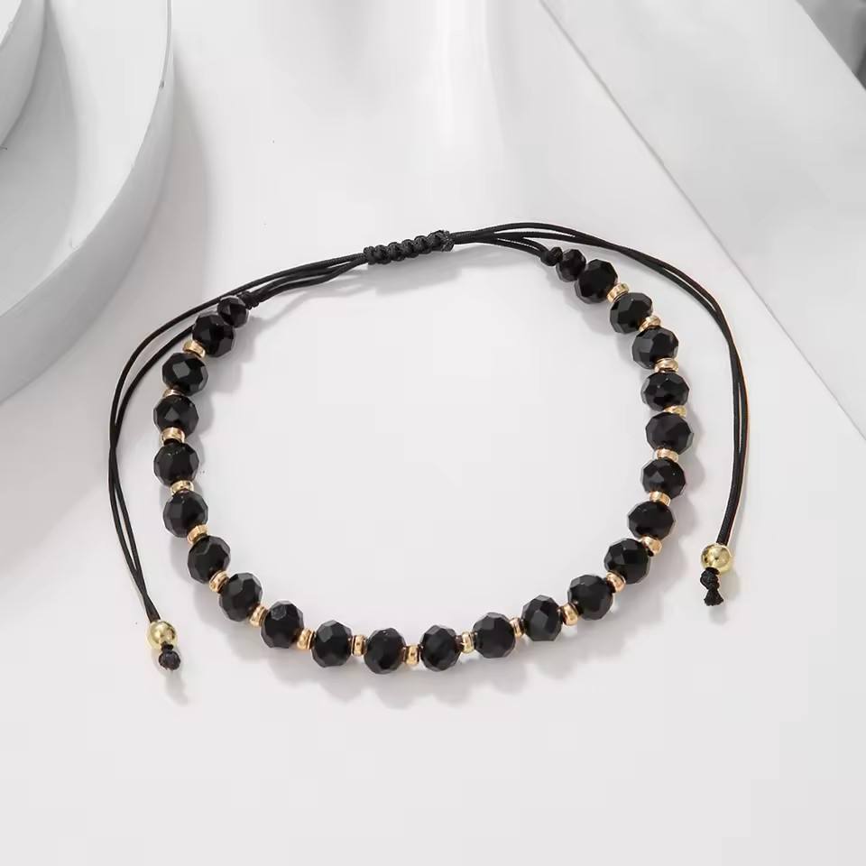เครื่องประดับแนวโบฮีเมียนแบบปรับได้แนวแฟชั่นกำไลข้อมือลูกปัดหินคริสตัลสีดำสำหรับผู้หญิงเครื่องประดับ