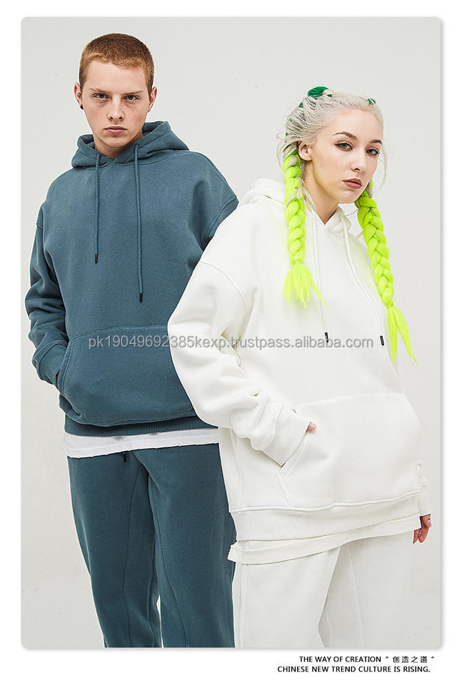 เสื้อฮู้ดแบรนด์แฟชั่น ยูนิเซ็กซ์ สำหรับฤดูใบไม้ร่วงและฤดูหนาว น้ำหนัก 330 กรัม ทรงโอเวอร์ไซส์ สไตล์ปากีสถาน สีพื้น ผ้าฟลีซ
