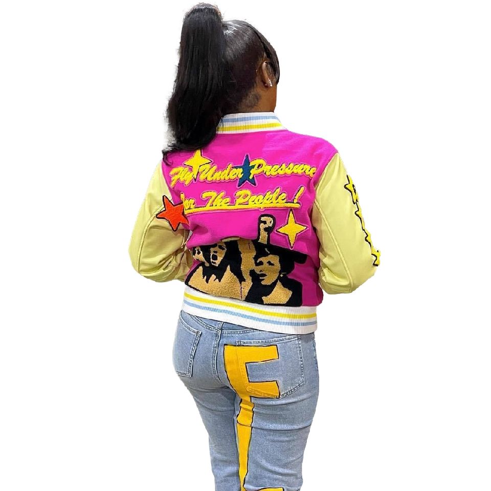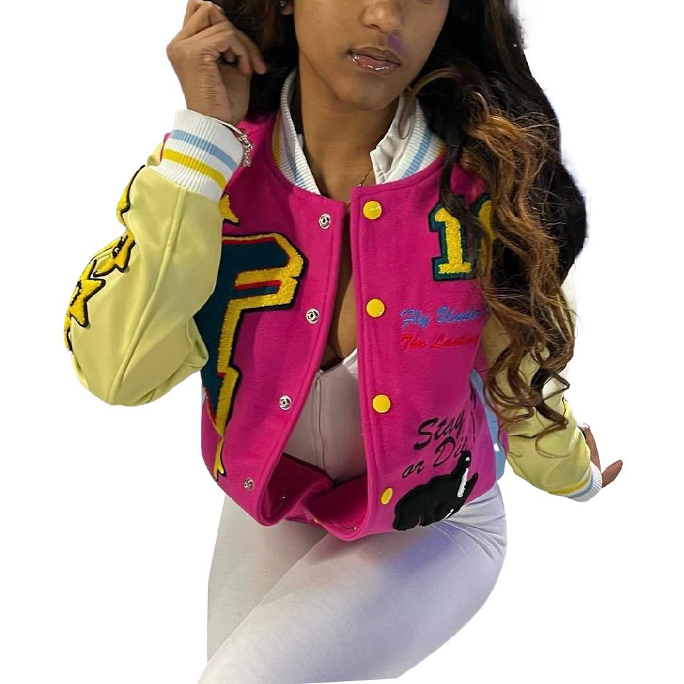 เสื้อแจ็คเก็ตวาร์ซิตี้สำหรับผู้หญิง แบรนด์แฟชั่น สไตล์เลตเตอร์แมน บอมเบอร์ สตรีทแวร์ เสื้อผ้าฤดูหนาว รับสั่งทำ
