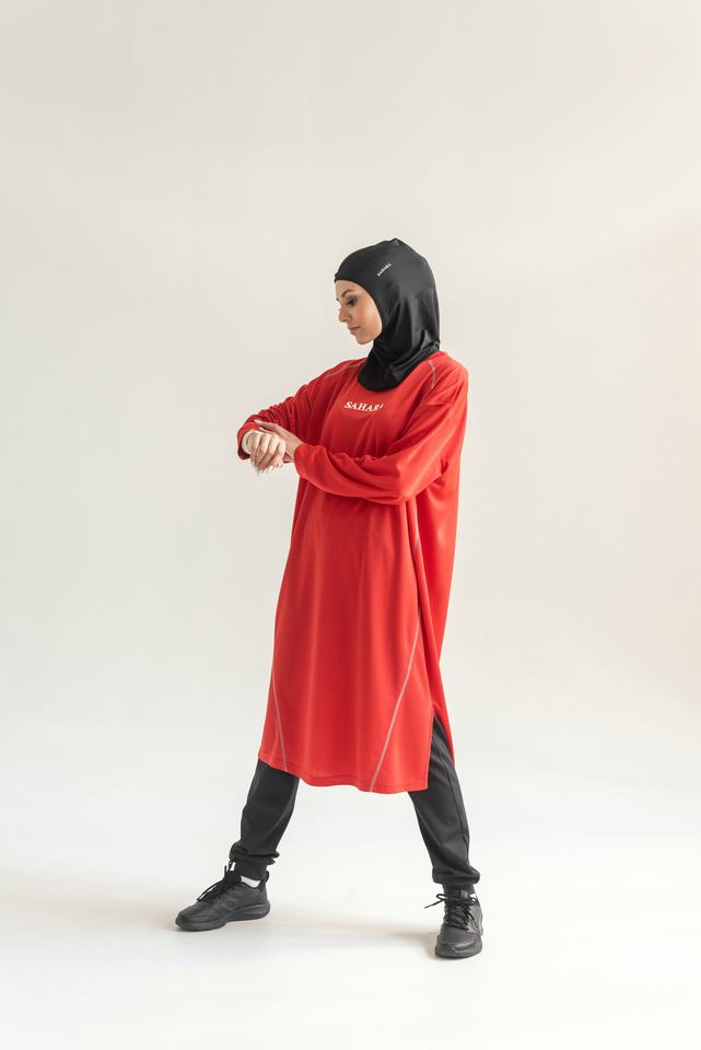 เสื้อแบรนด์แฟชั่นพร้อมระบบหายใจขนาดเล็กสำหรับกีฬาที่ใช้งานแฟชั่นสไตล์อิสลามเจียมเนื้อเจียมตัว