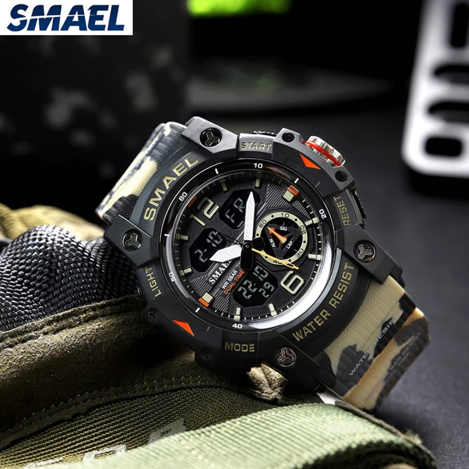 นาฬิกาข้อมือดิจิตอล LED ลายพรางแฟชั่น SMAEL 8007MC สำหรับเด็ก นักเรียน เล่นกีฬา กันน้ำ พร้อมฟังก์ชั่นจับเวลาและนาฬิกาปลุก