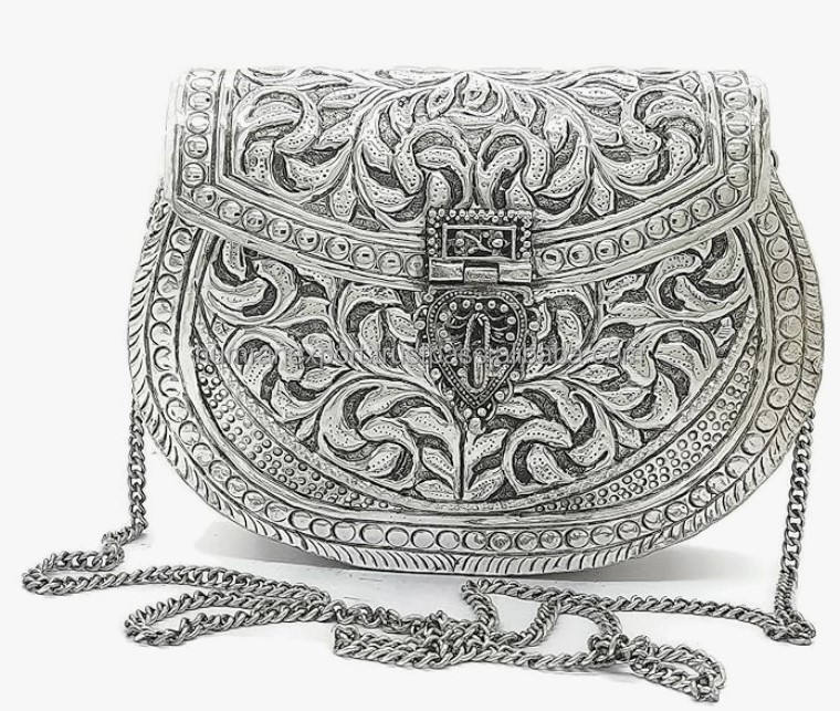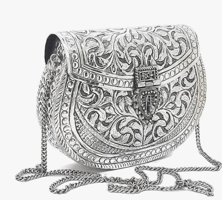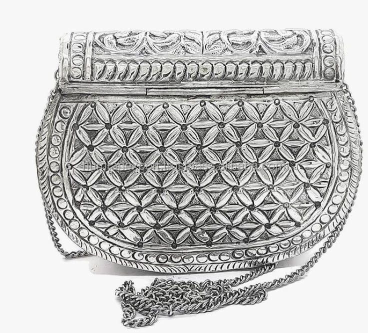 กระเป๋าโลหะแฟชั่นลำลองพร้อมซับในผ้าซาตินและลายหินจากอินเดีย