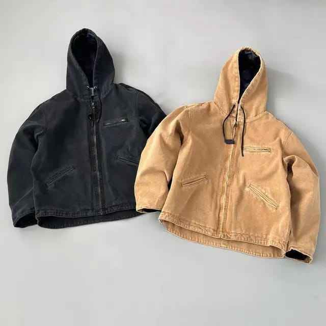 แจ็กเก็ตมีซิปแบบเต็มตัวทำจากผ้าใบผ้าฝ้ายหนาเสื้อทำงานแฟชั่นลำลองแบบเรียบง่ายออกแบบได้ตามต้องการ